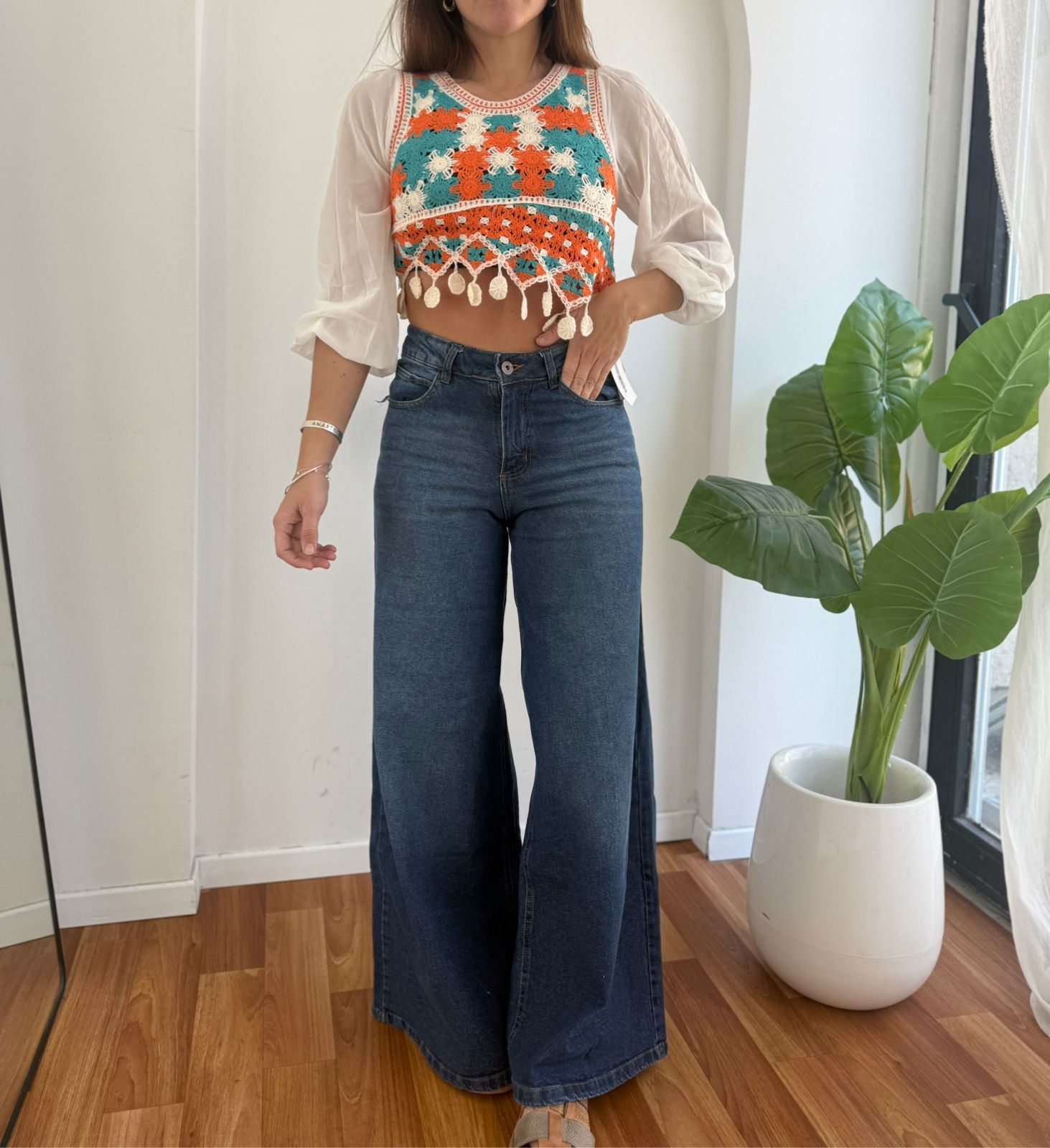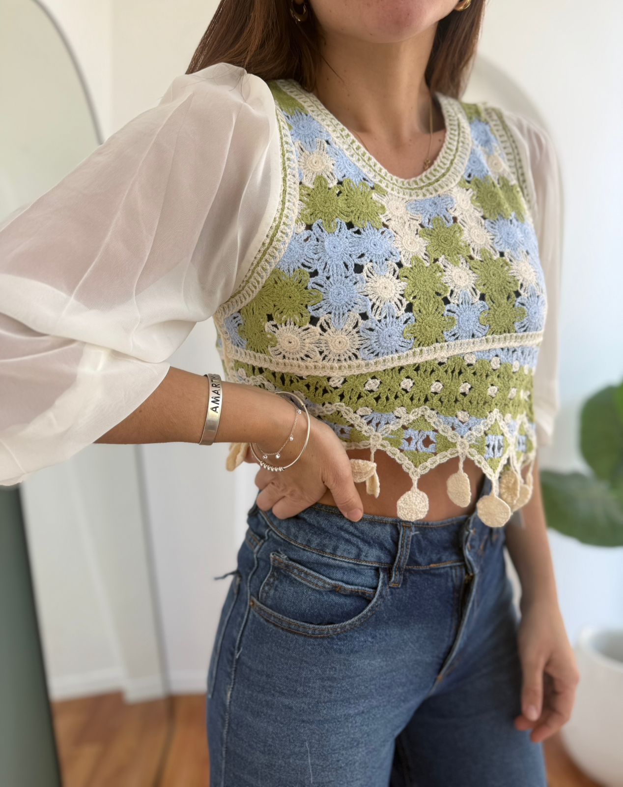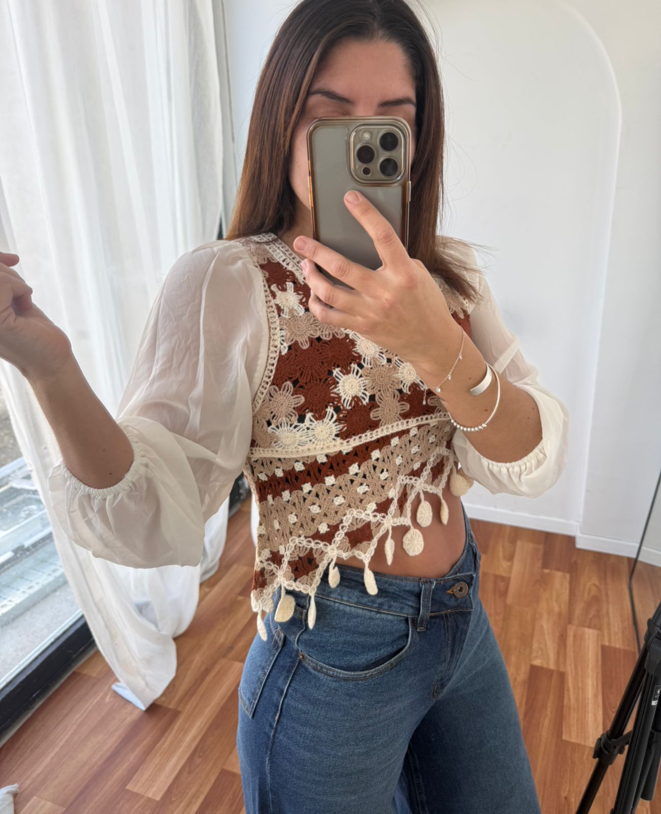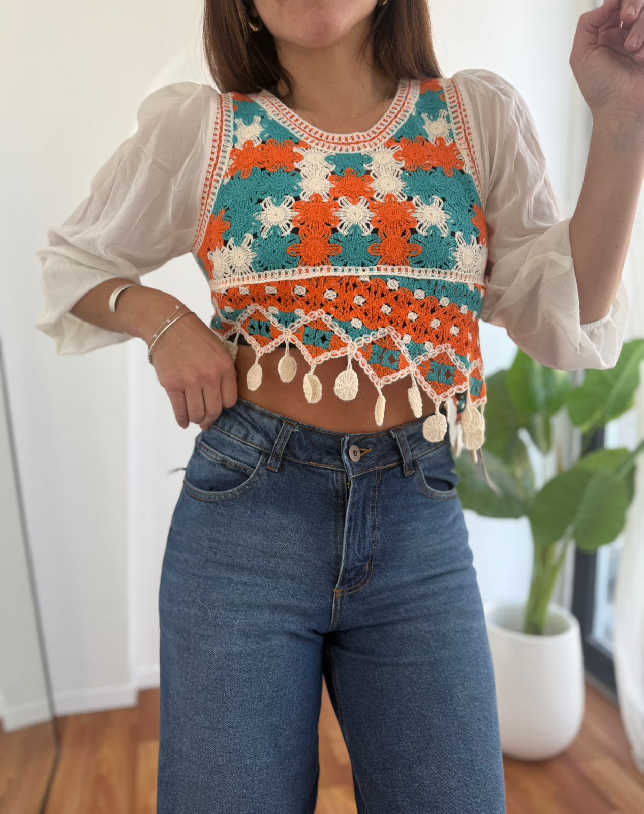 BLUSA TEJIDA IRREGULAR CON MANGAS DE GASA GIANNI