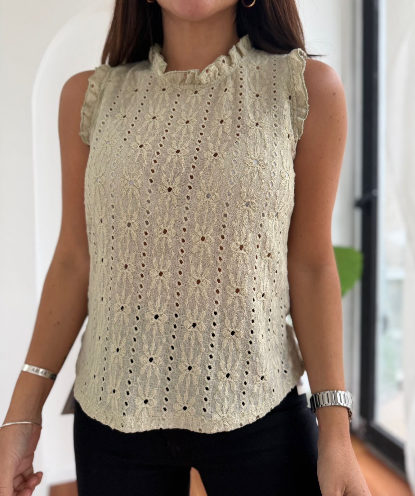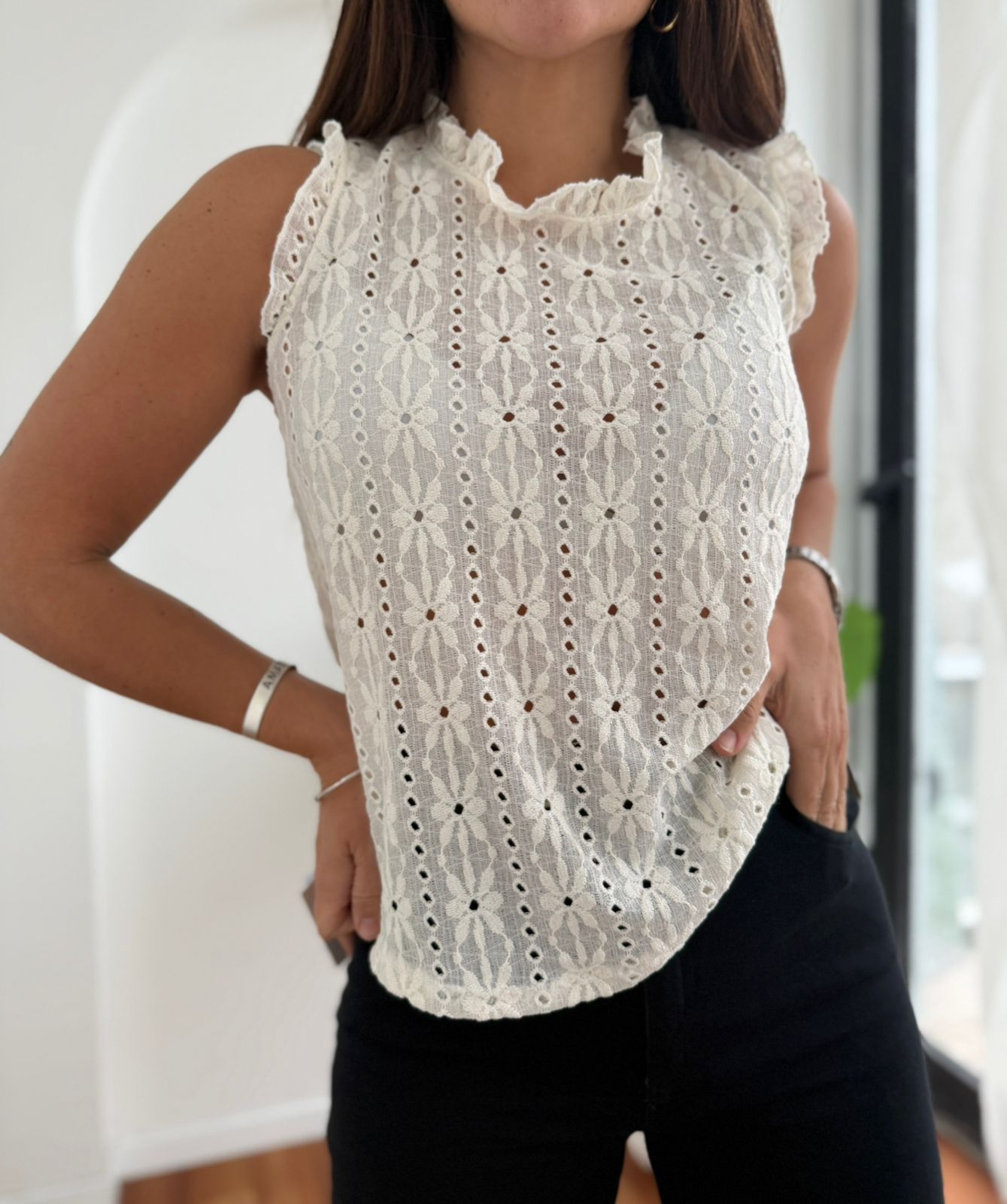 BLUSA DE BRODERIE CON GOTA ATRAS Y VOLADOS LUZ