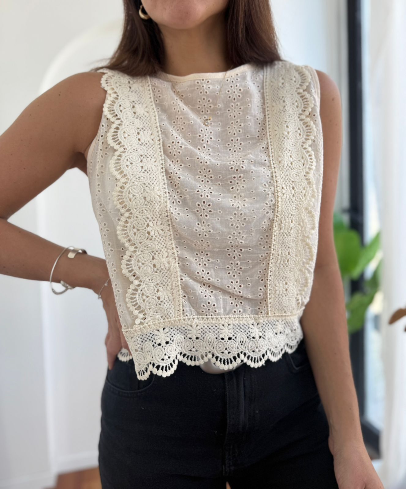 BLUSA DE BRODERIE CON BOTONES EN ESPALDA RICHIE