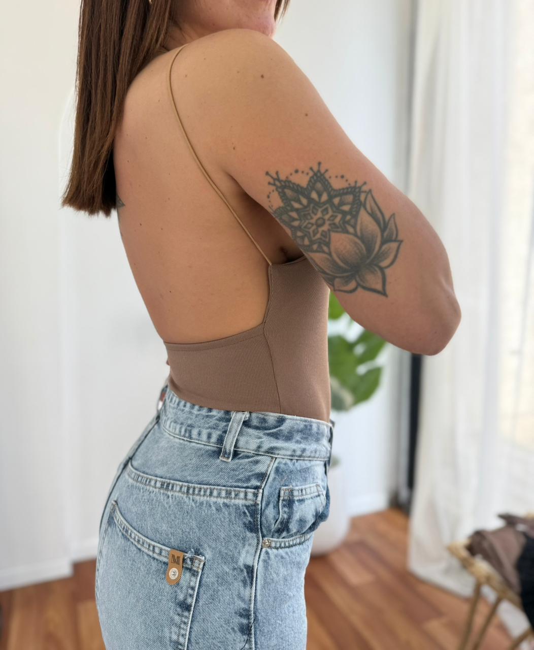 BODY DE MORLEY LYCRA CON ESPALDA DESCUBIERTA Y TIRAS CORDON CHANEL