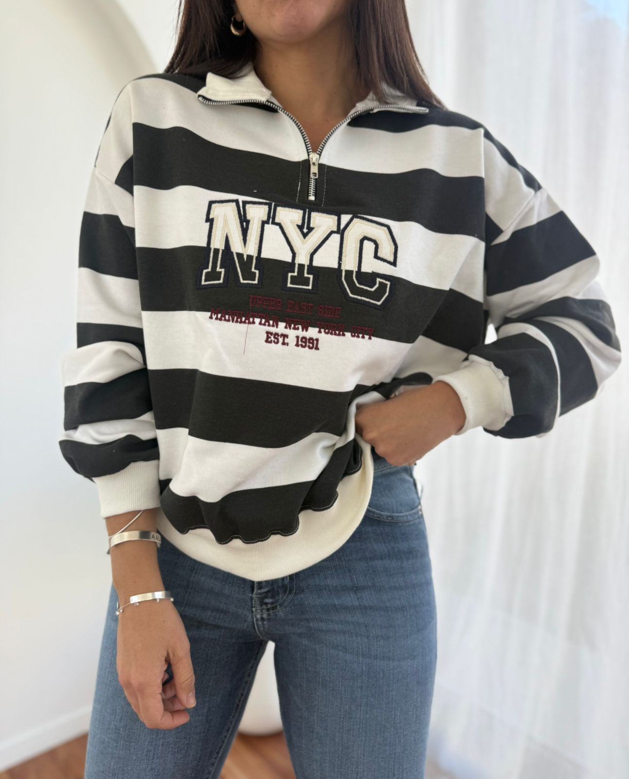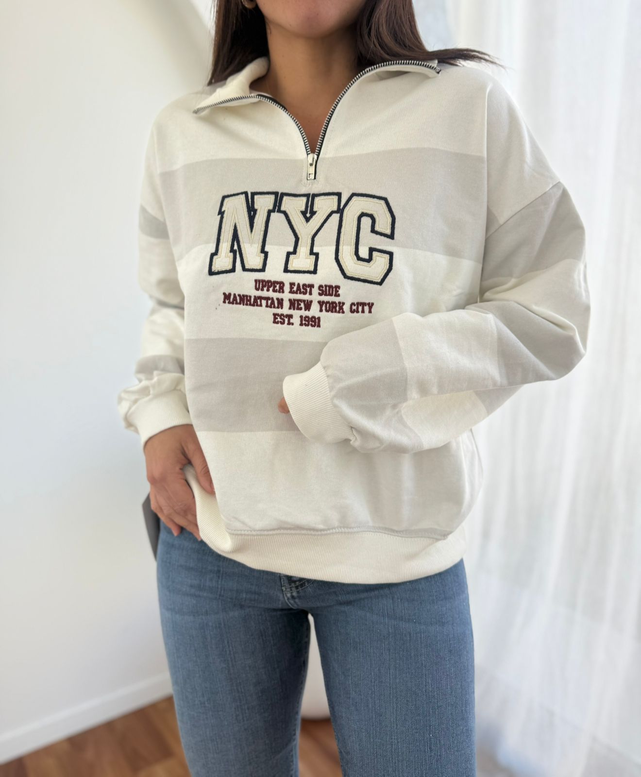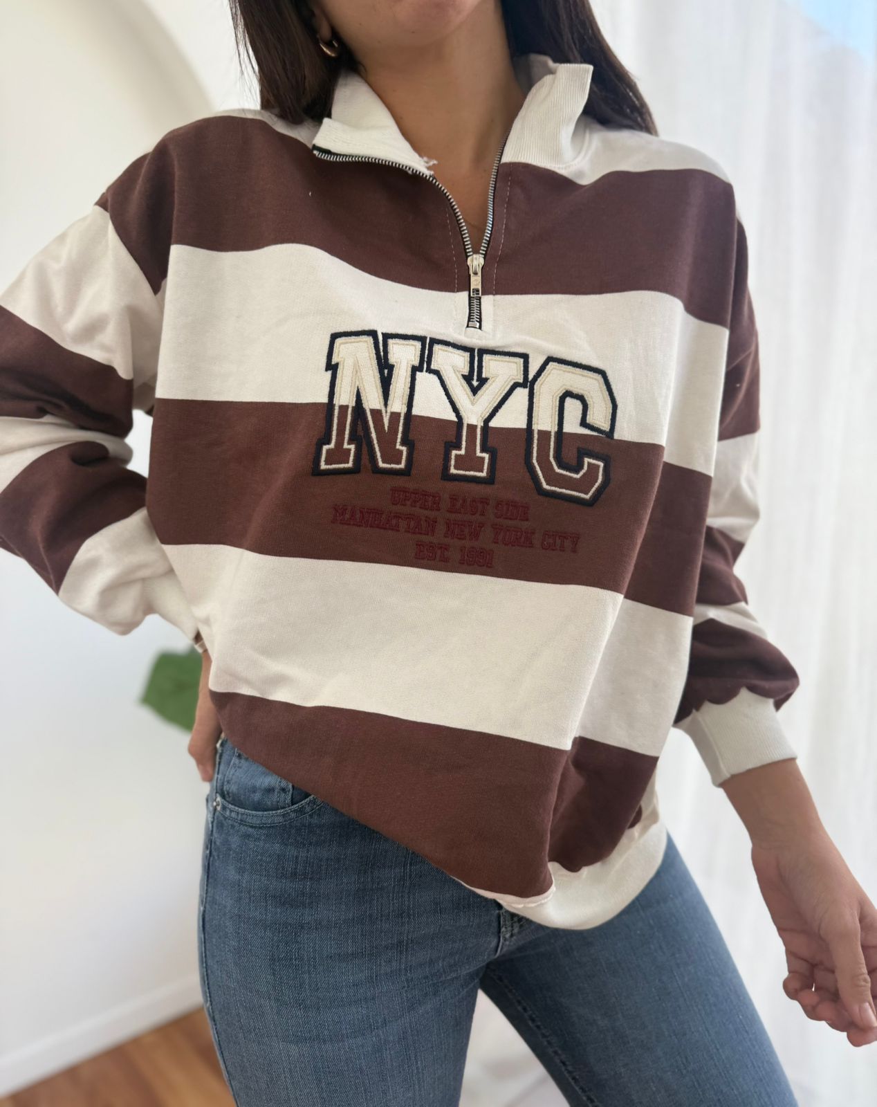 BUZO DE ALGODON BORDADO CON CUELLO Y CIERRE AMERICAN