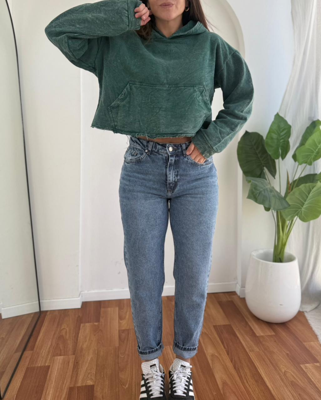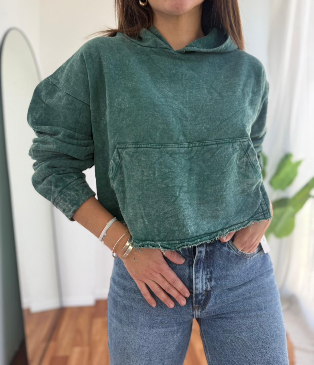 BUZO CROP DE ALGODON BATIK CON CAPUCHA Y BOLSILLO KYO