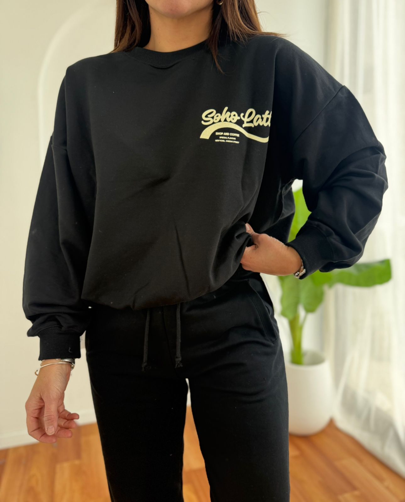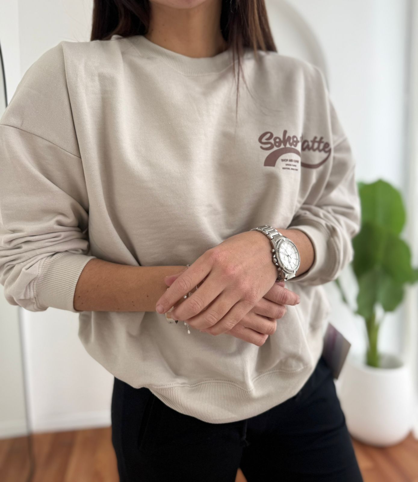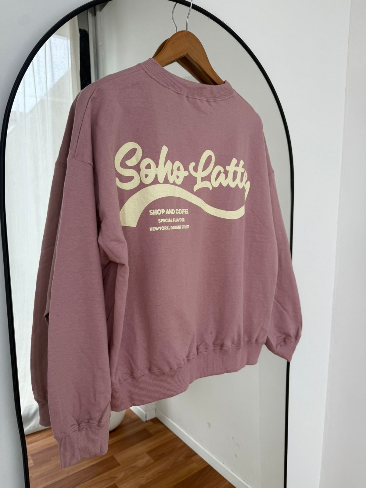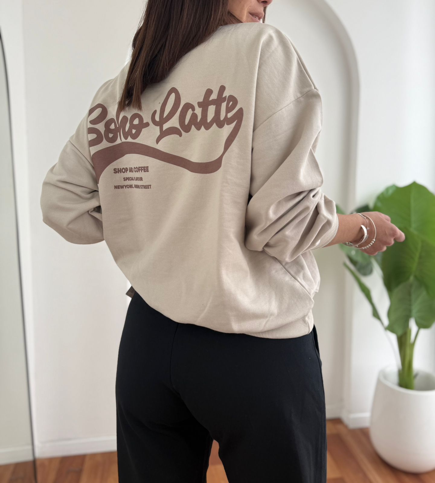 BUZO OVER DE ALGODON RUSTICO CON ESTAMPA ADELANTE Y ATRAS SOHO LATTE
