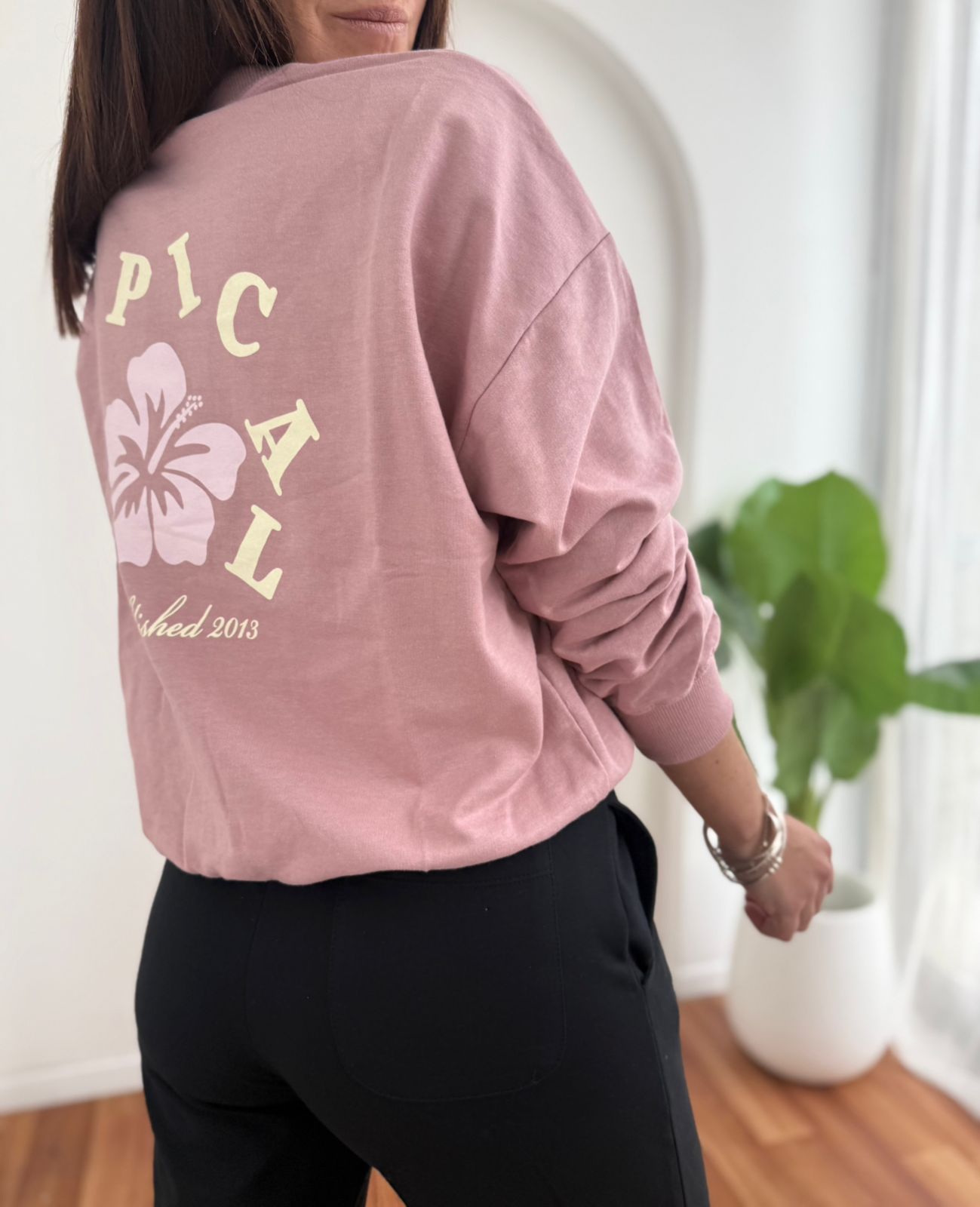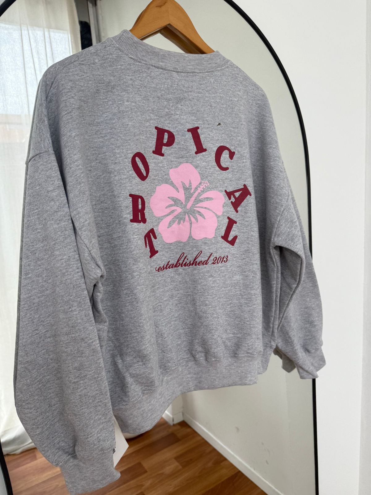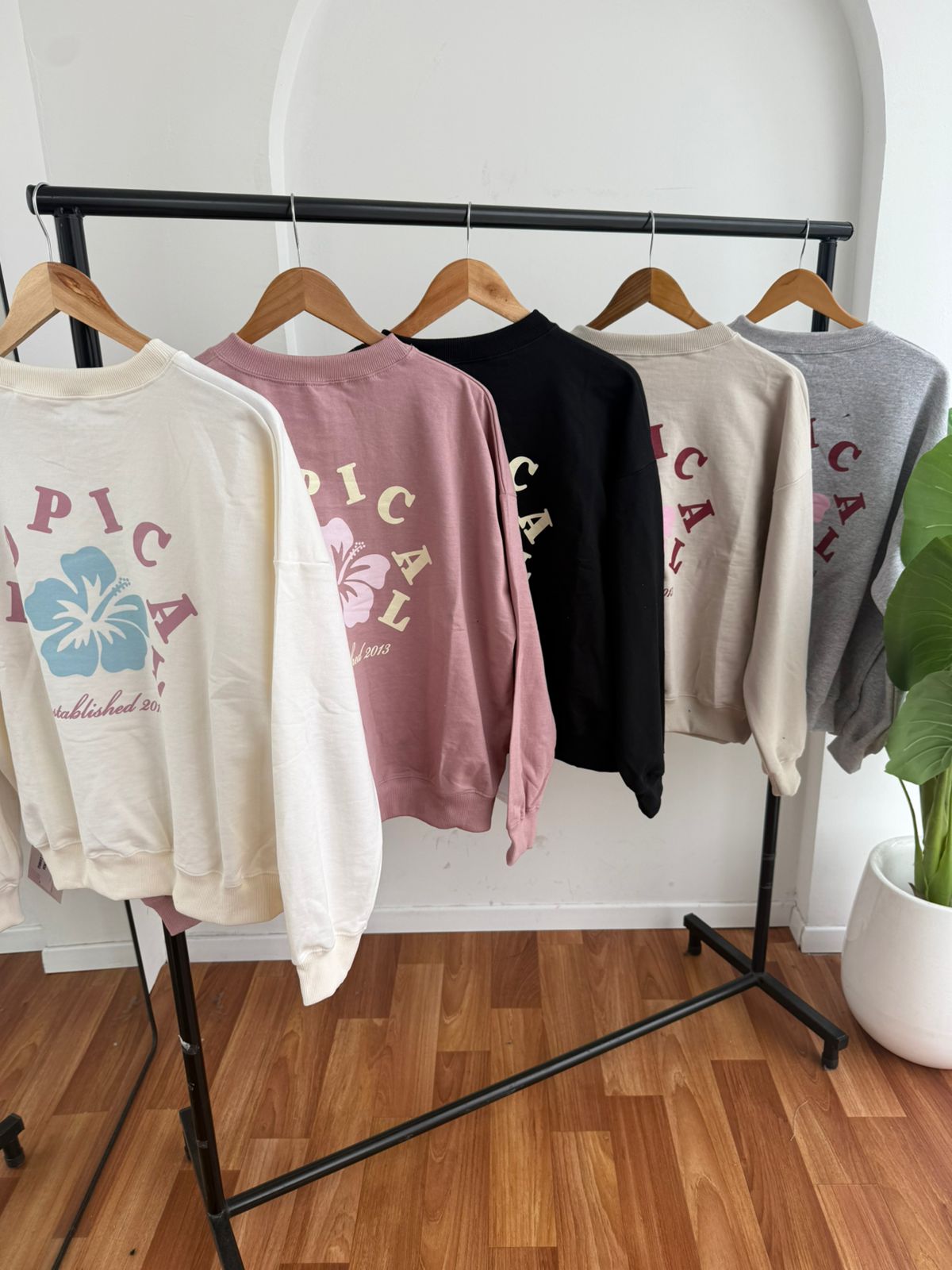 BUZO OVER DE ALGODON RUSTICO ESTAMPADO ADELANTE Y ATRAS TROPICAL