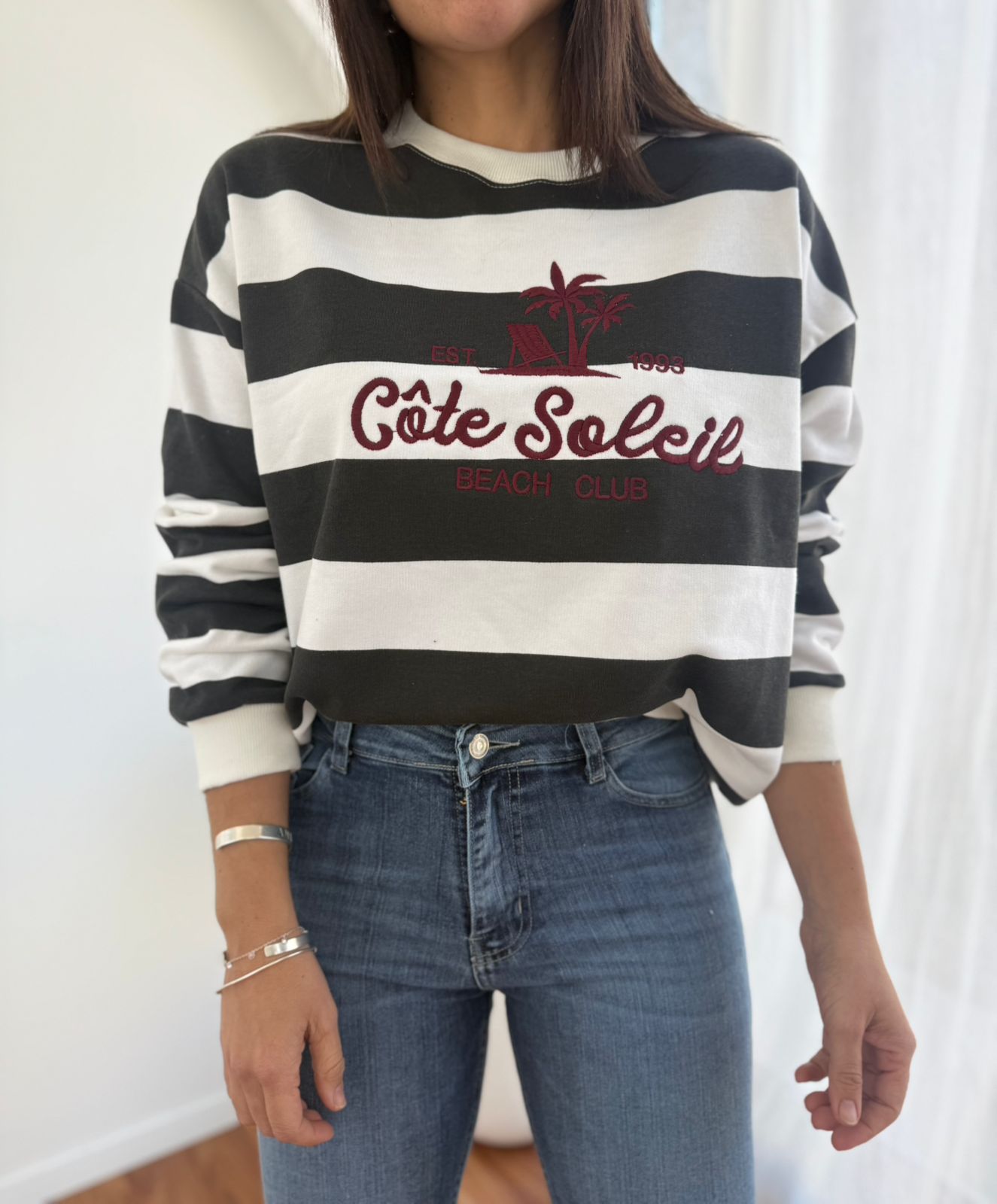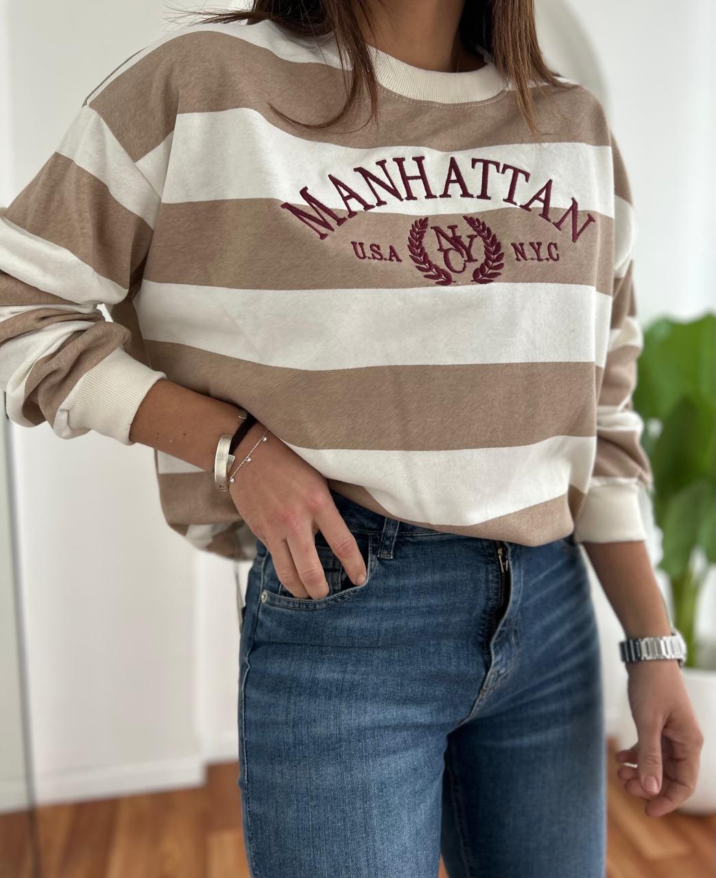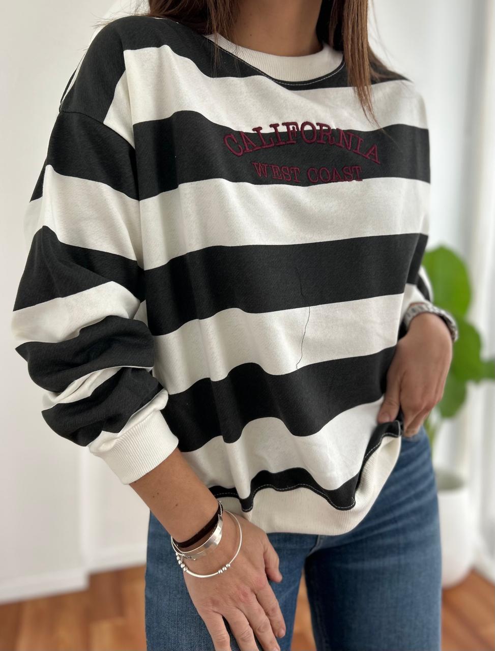 BUZO RUSTICO DE ALGODON RAYADO CON DIFERENTES ESTAMPAS BORDADAS WEST