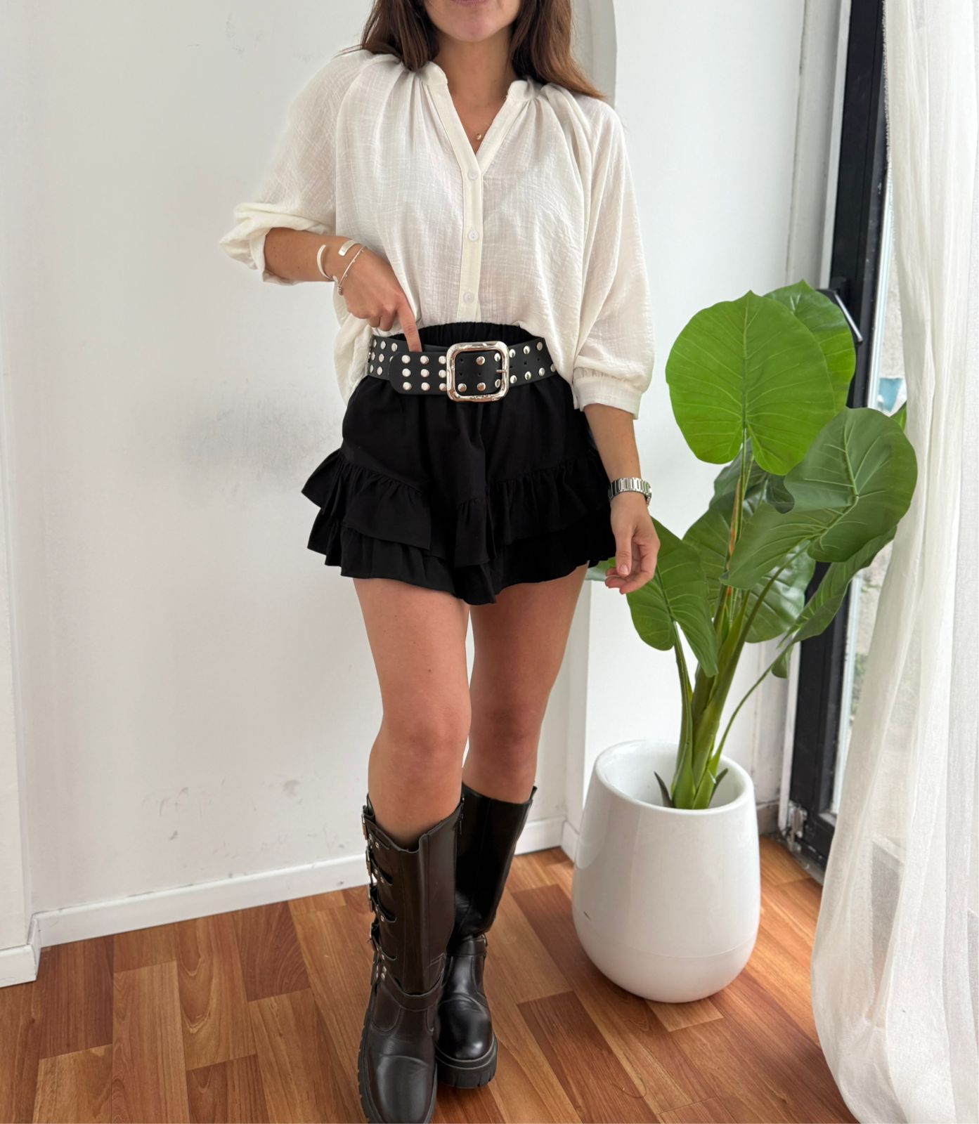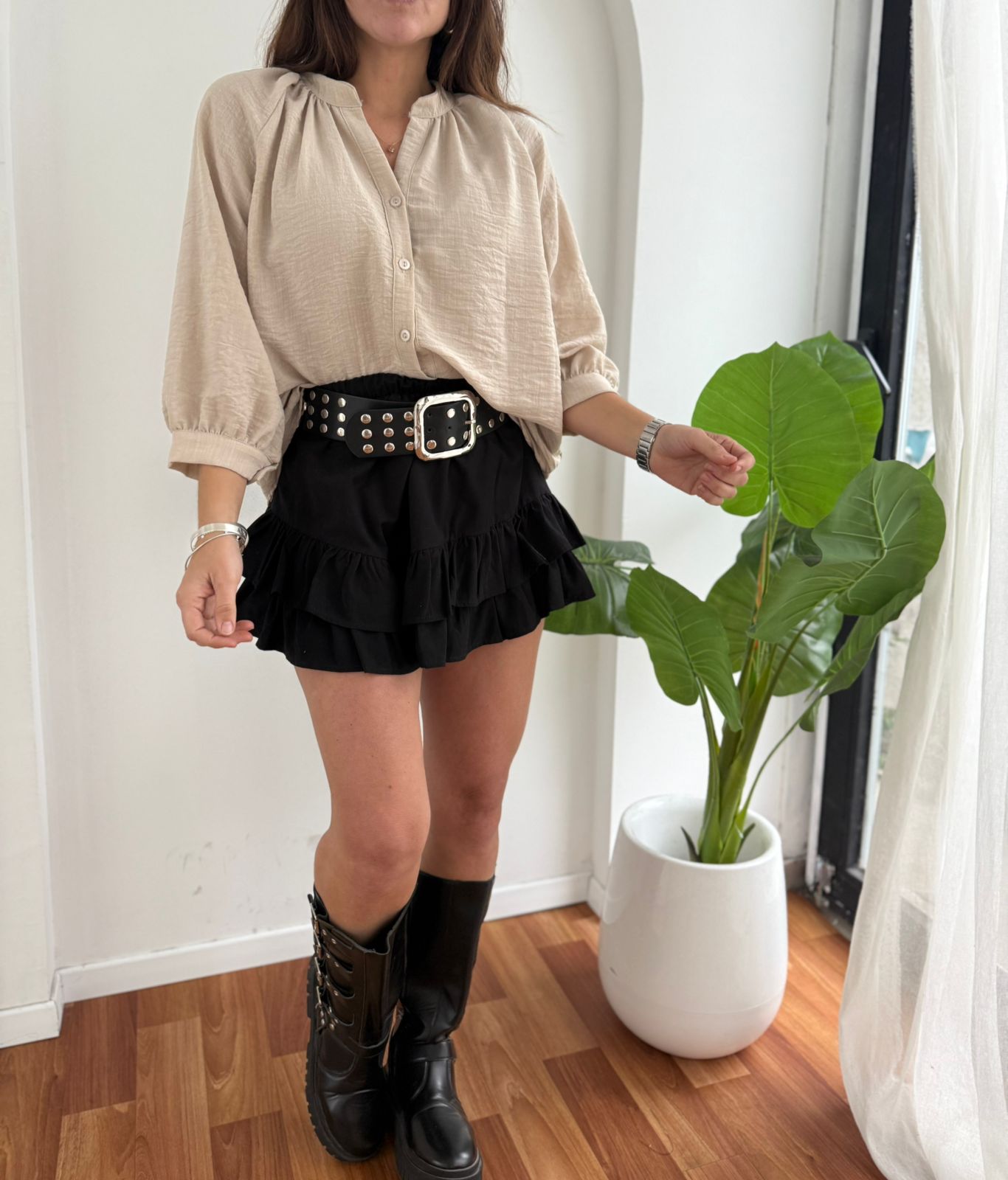 CAMISOLA CUELLO MAO DE LINO CON PINZAS Y MANGAS 3/4 NOUR