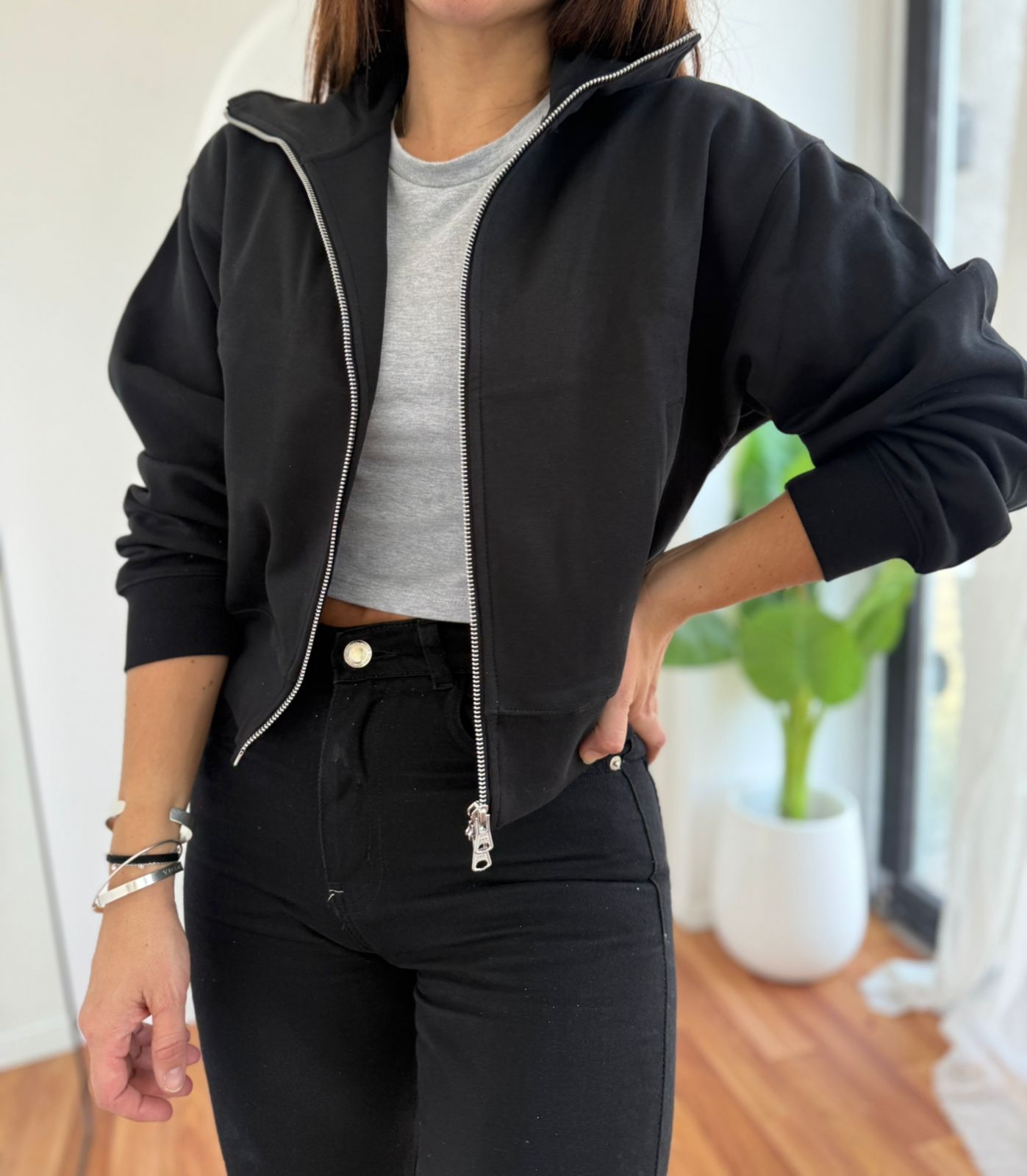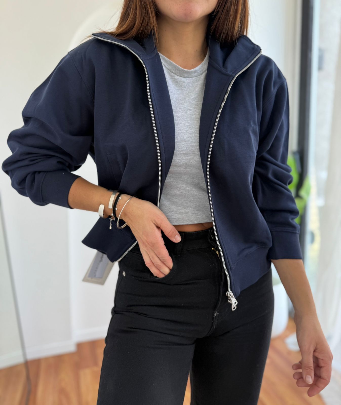 CAMPERA DE ALGODON CORTE BOMBER CON CUELLO SHAKE
