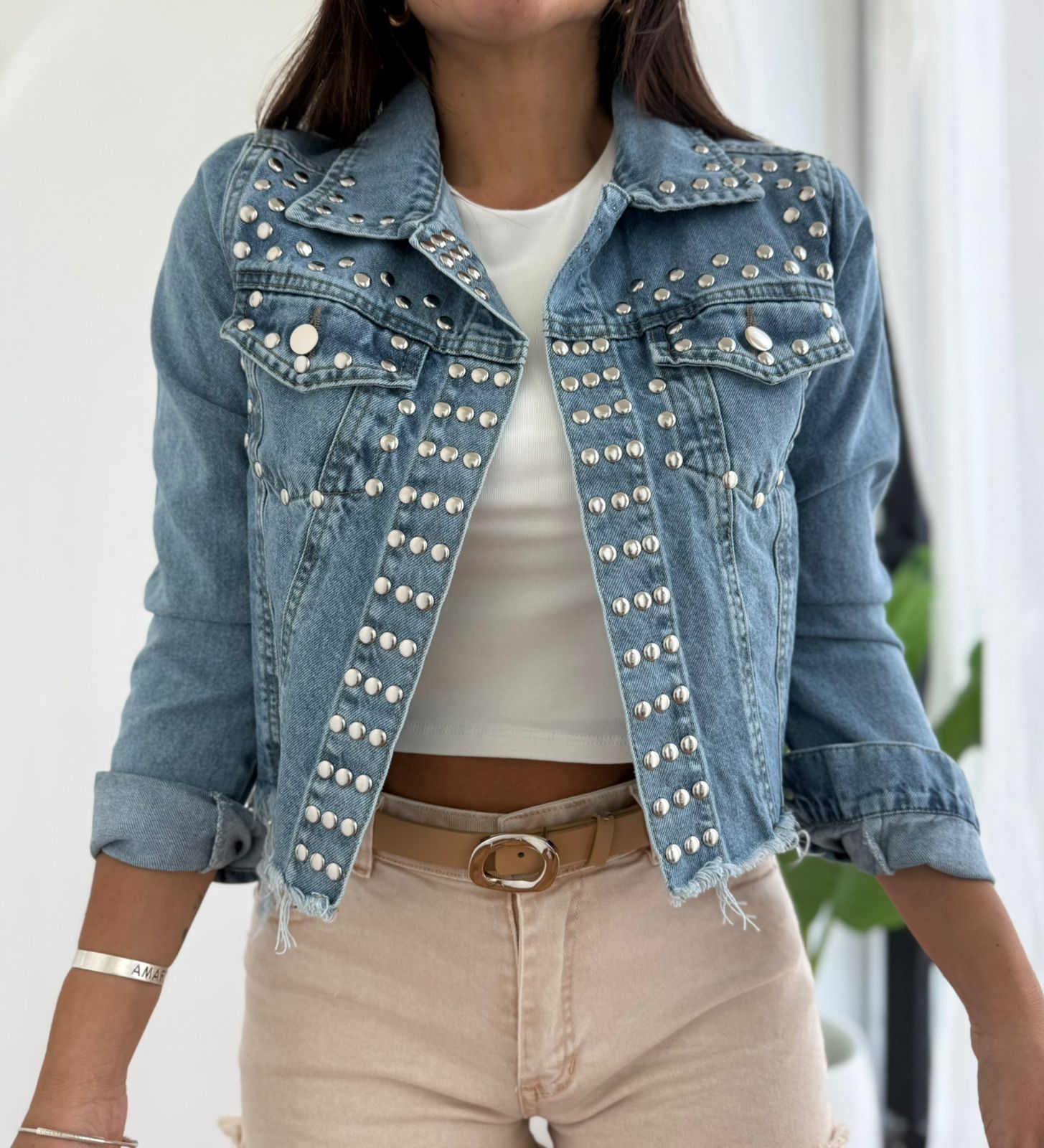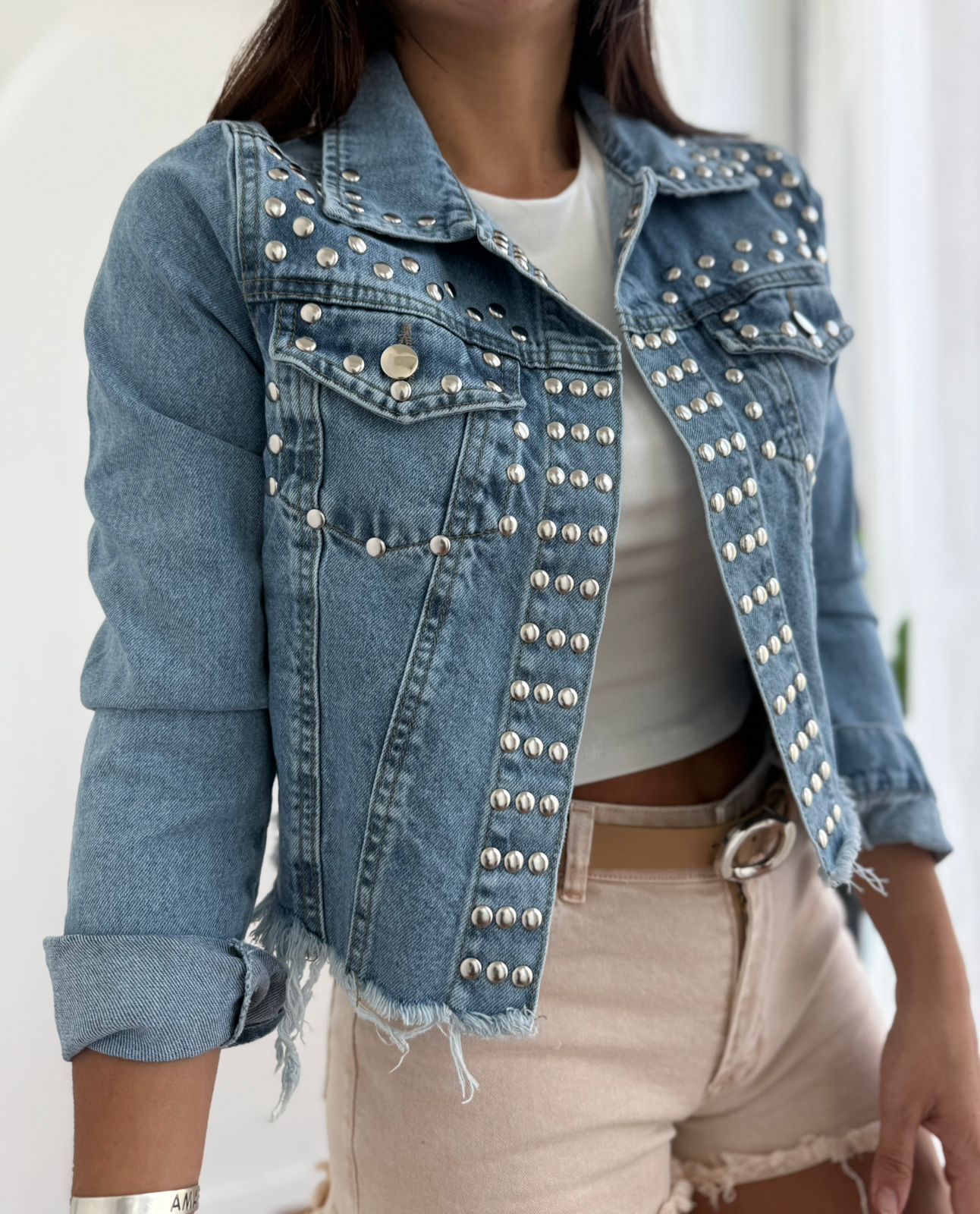 CAMPERA DE JEAN CON TACHAS VINCE