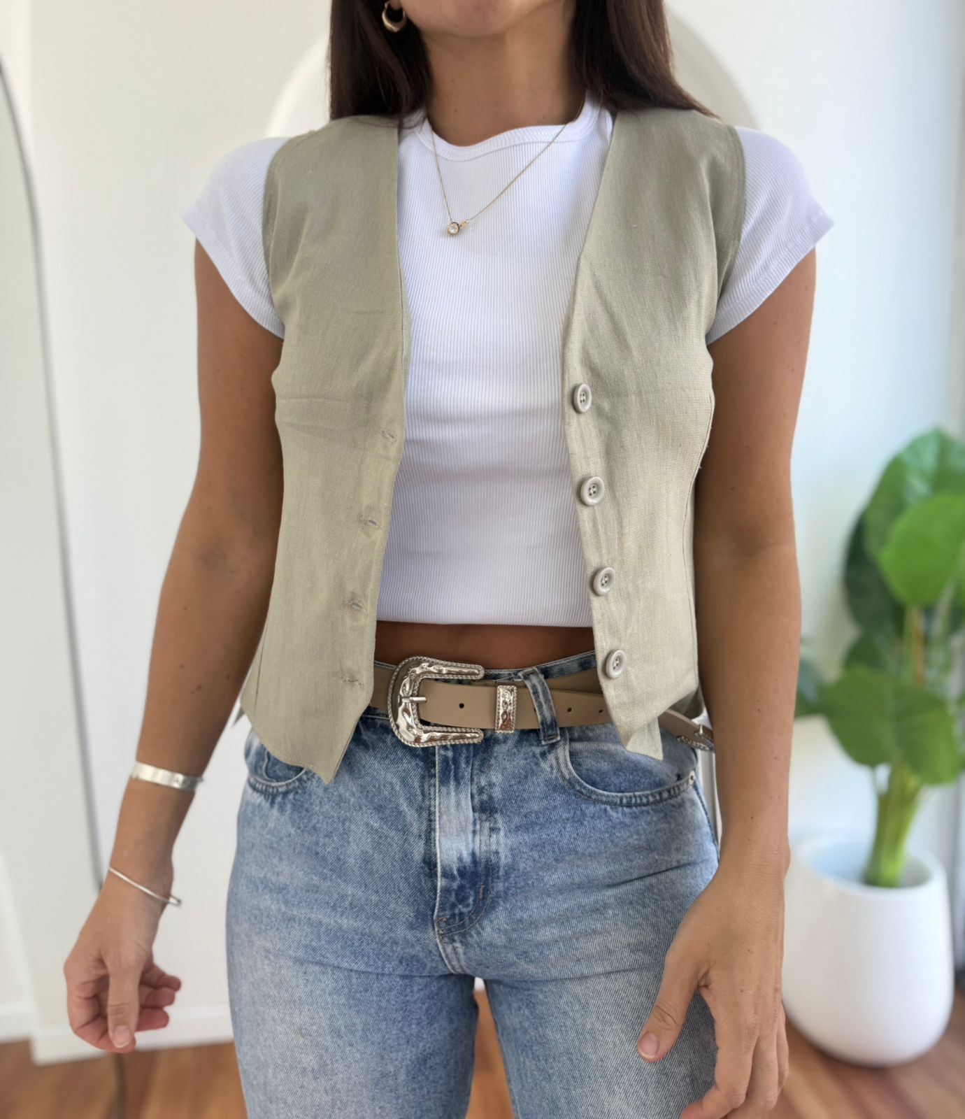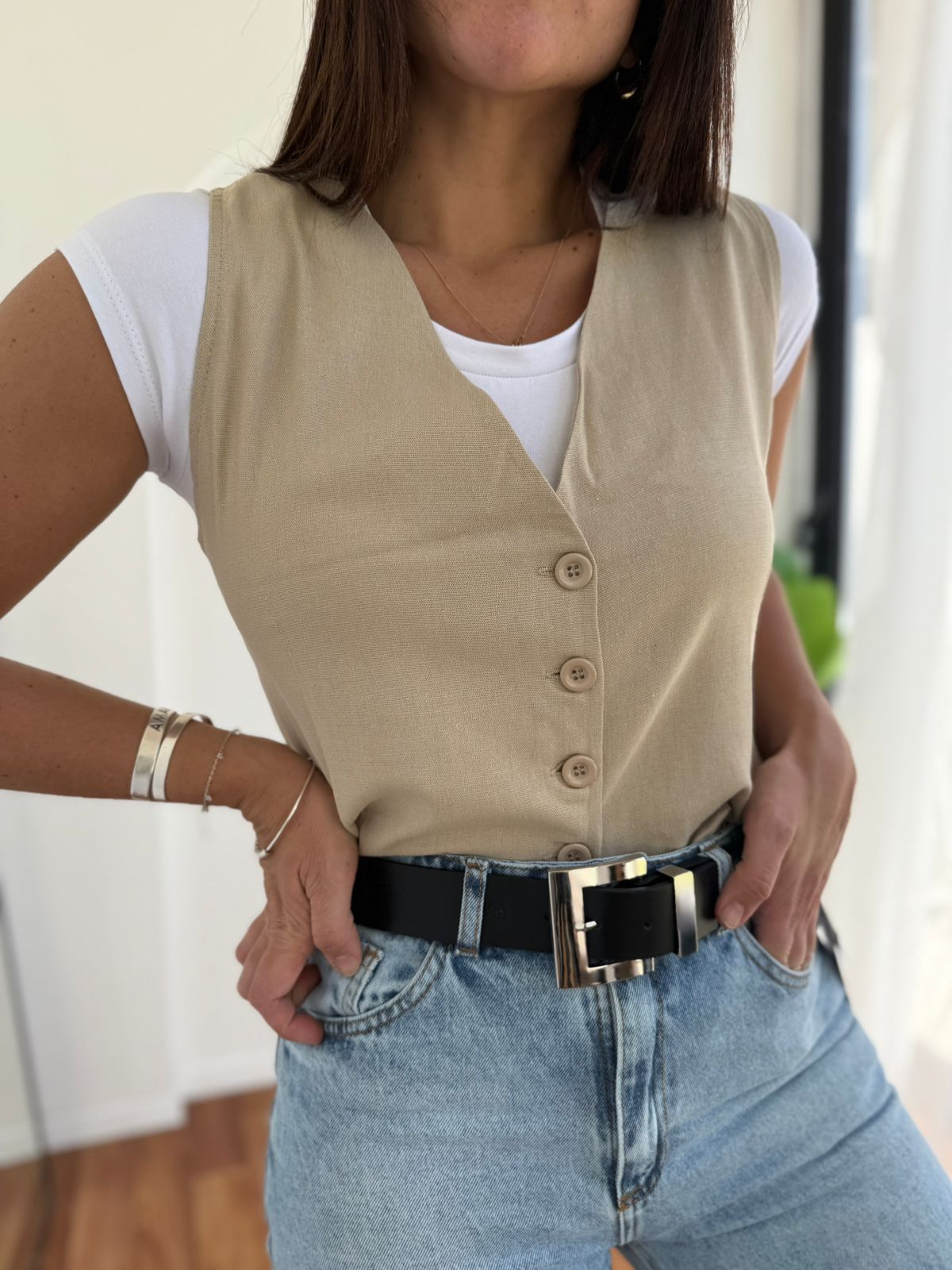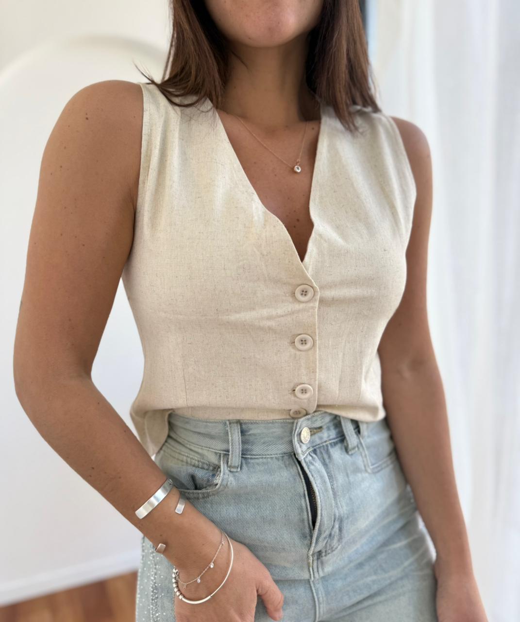 CHALECO SASTRERO DE LINO CON BOTONES NURIA