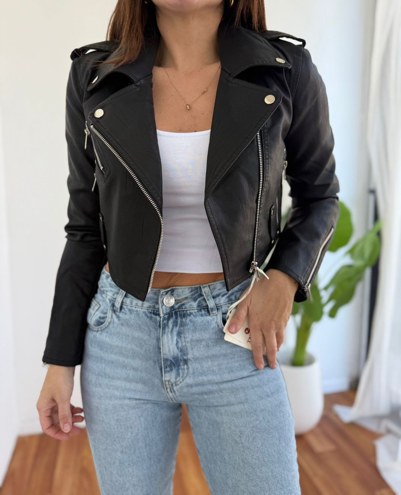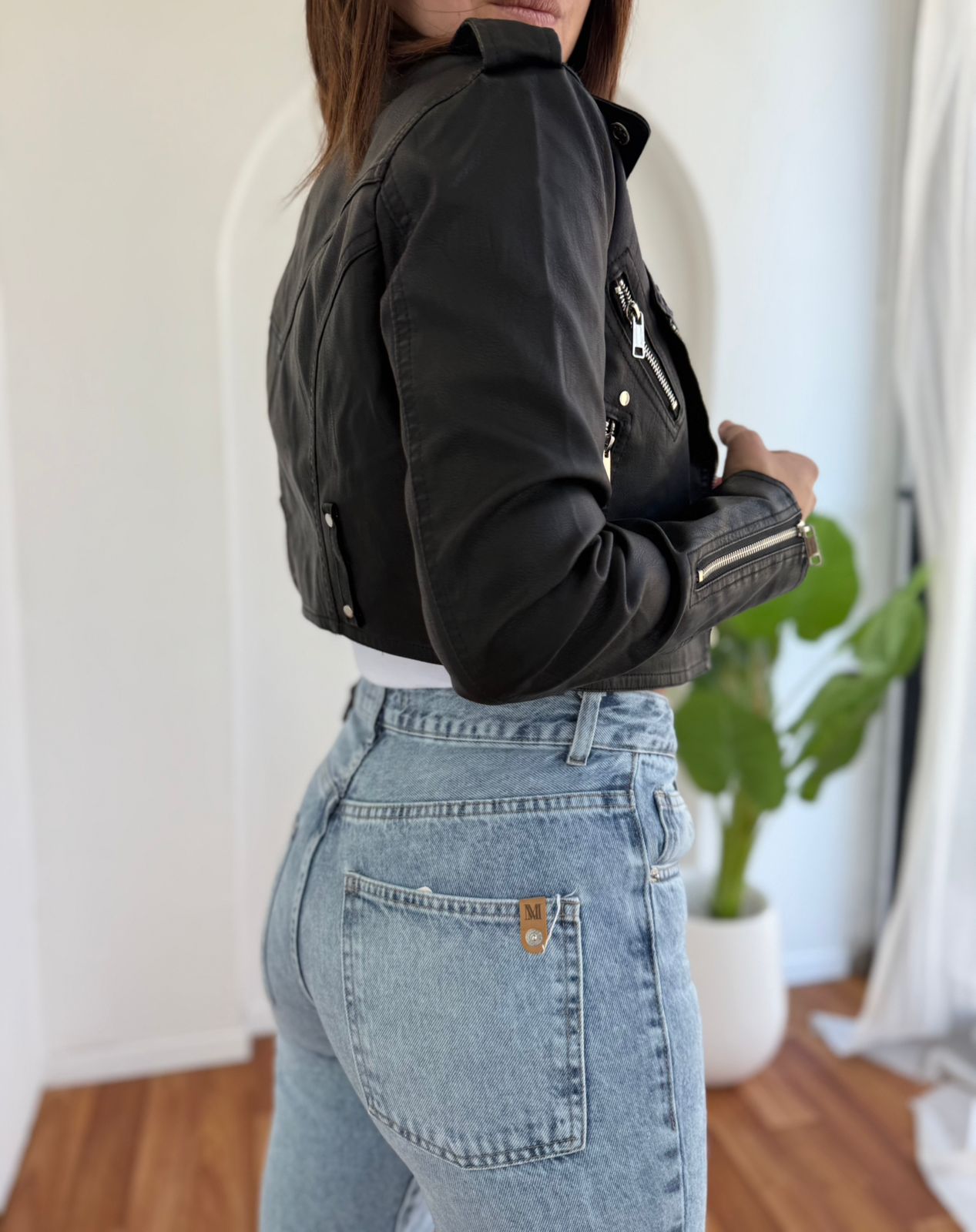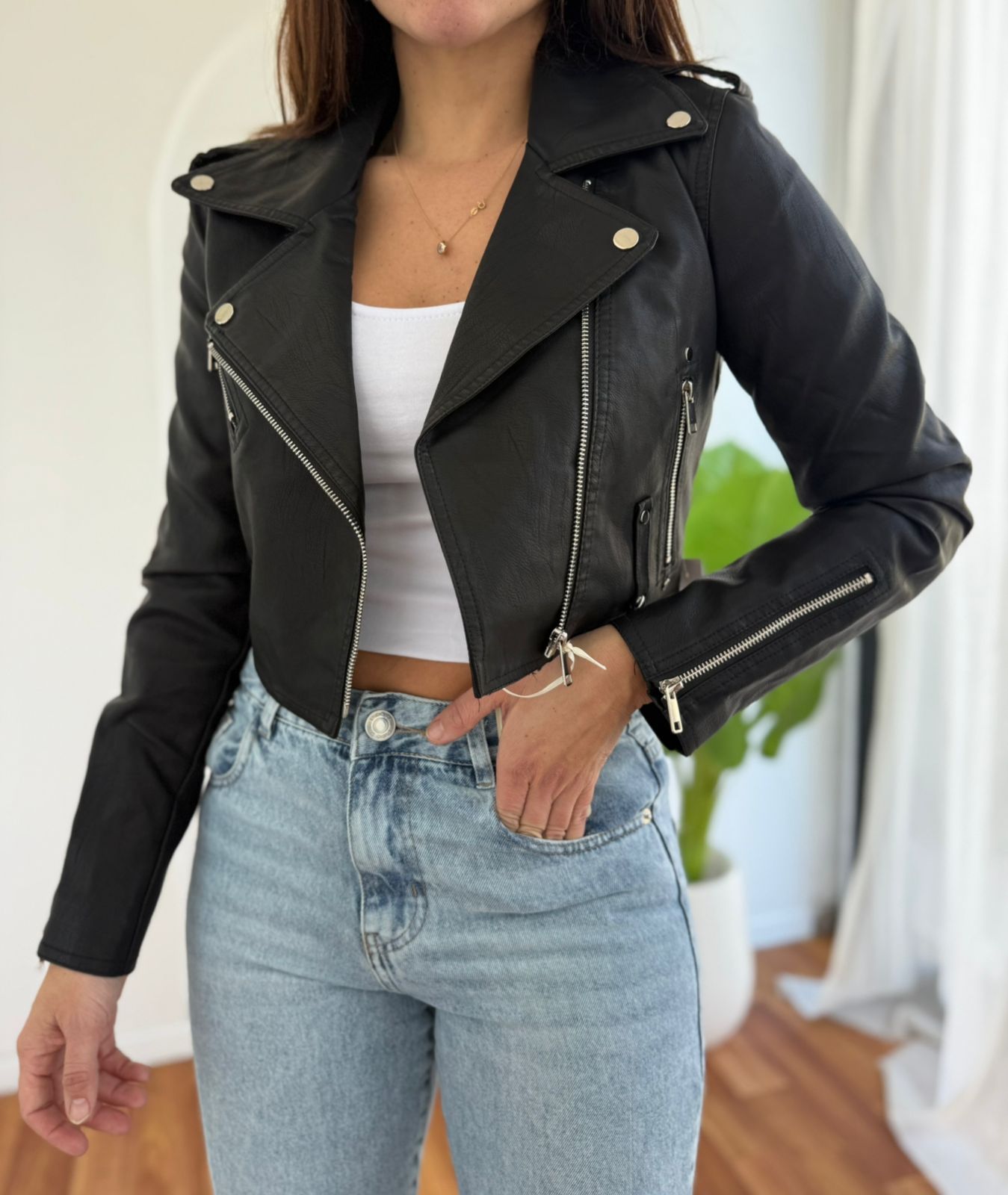 CHAQUETA CROP SIMIL CUERO ANDREA