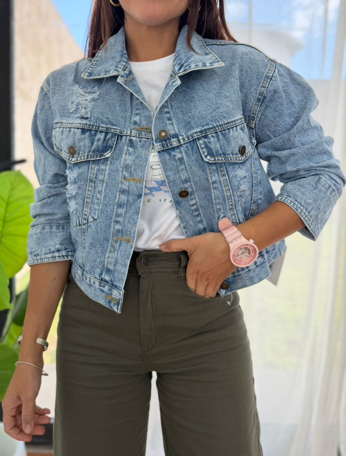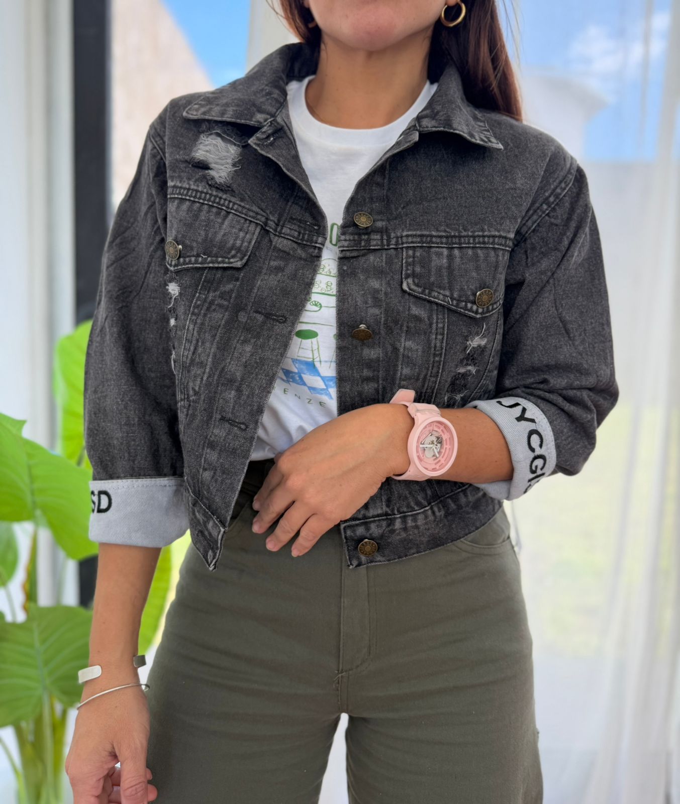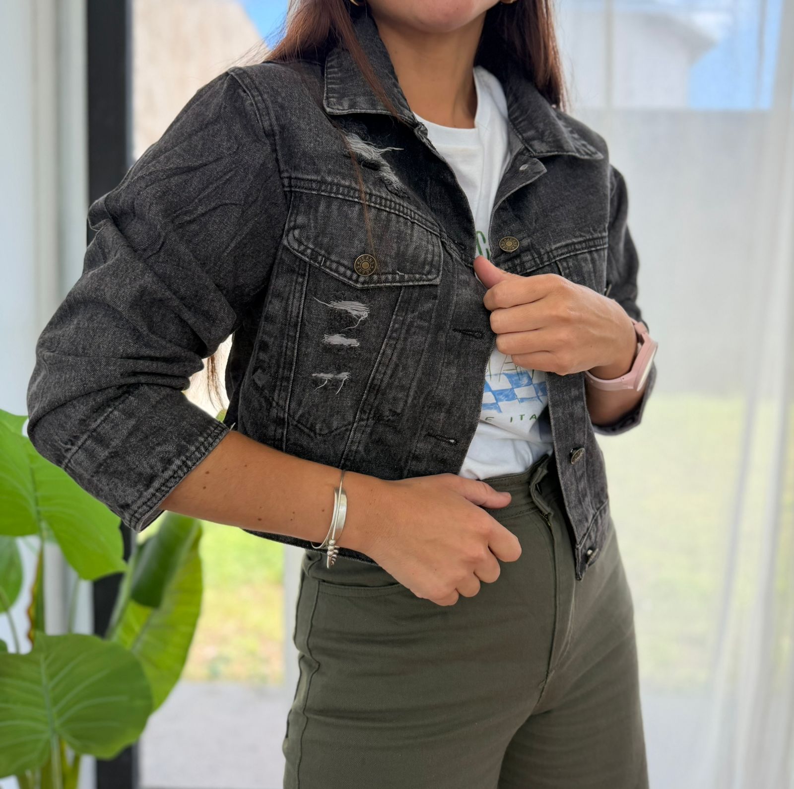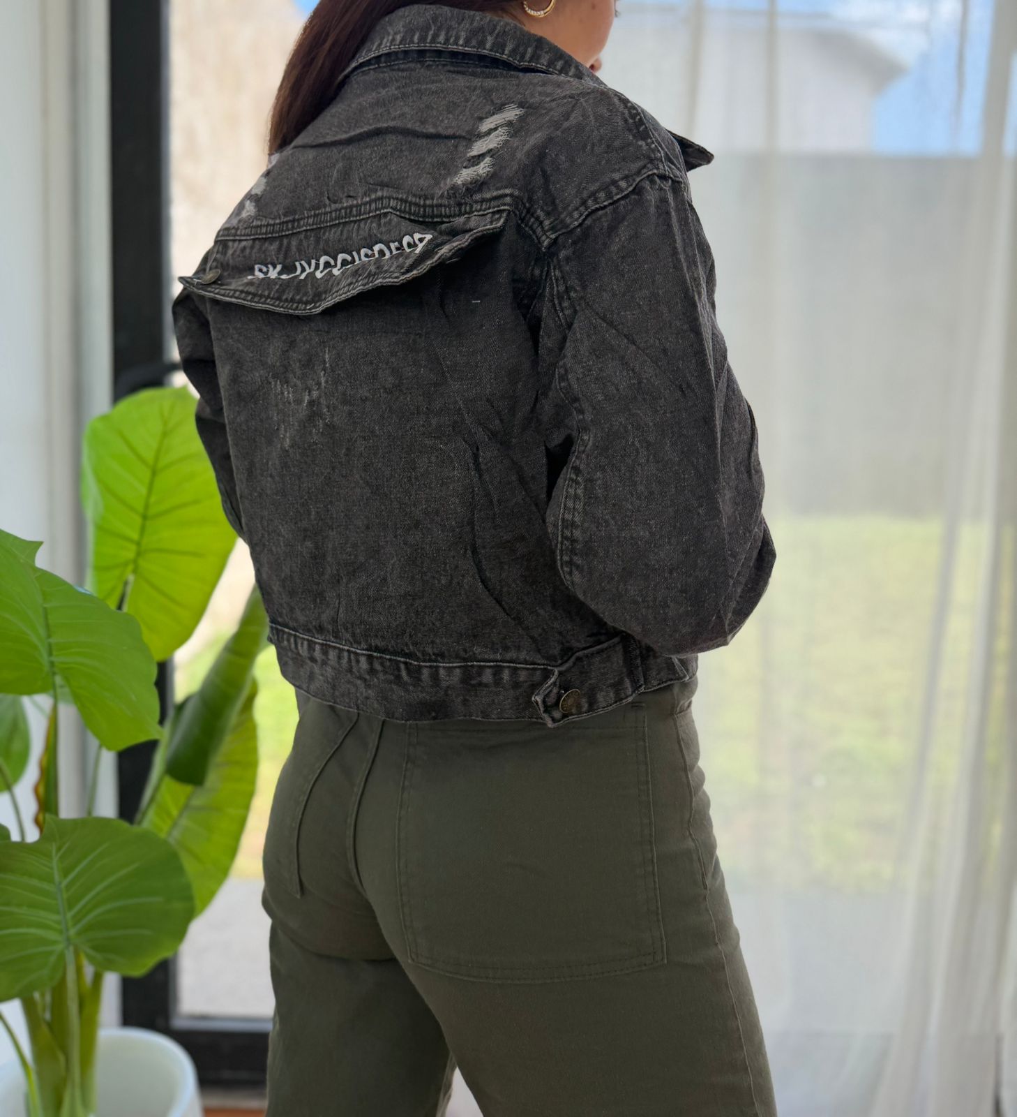 CHAQUETA CROP OVER DE JEAN CON BORDADO ATRAS NASTYA