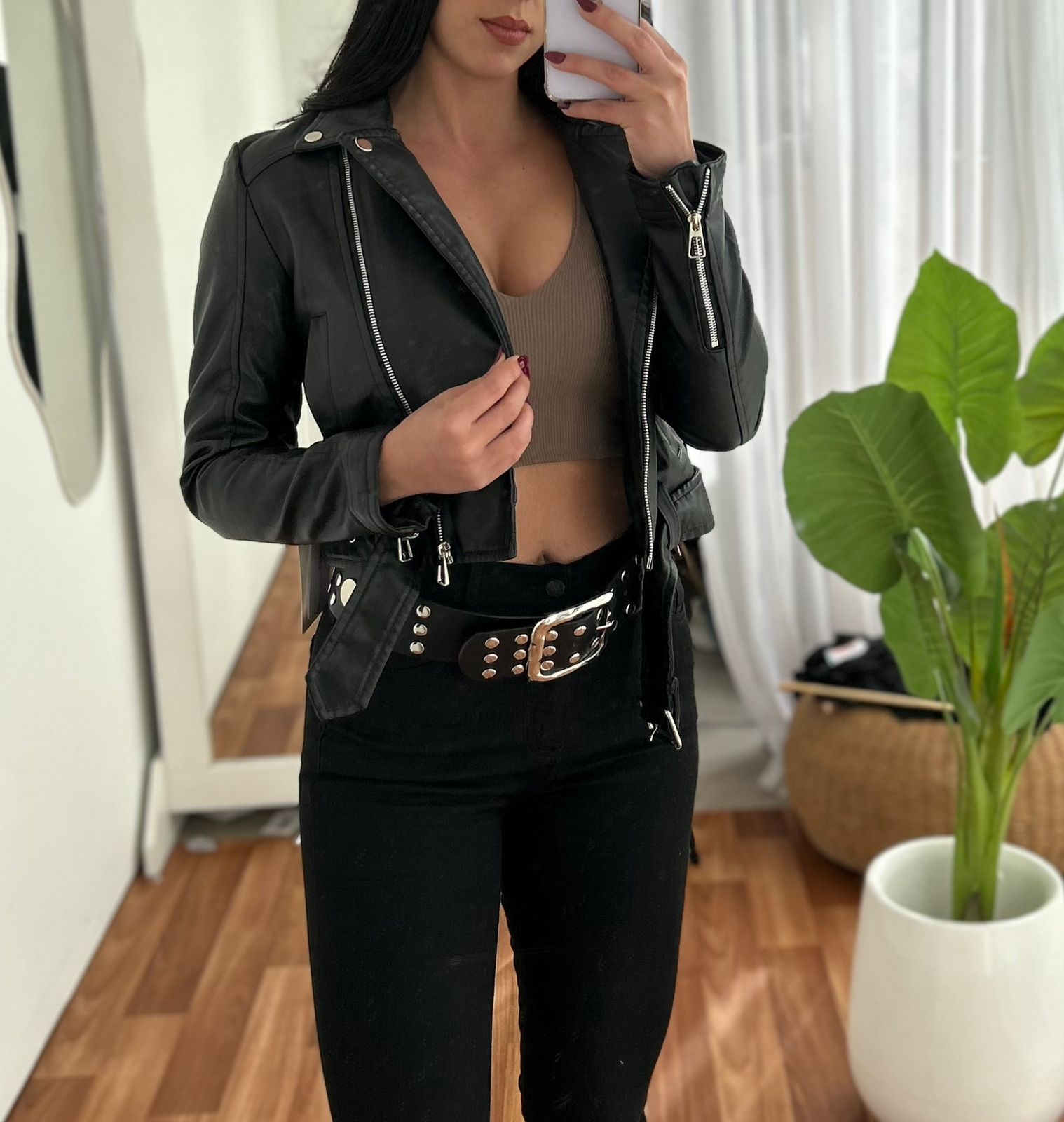 CHAQUETA SIMIL CUERO CON CINTO VELA