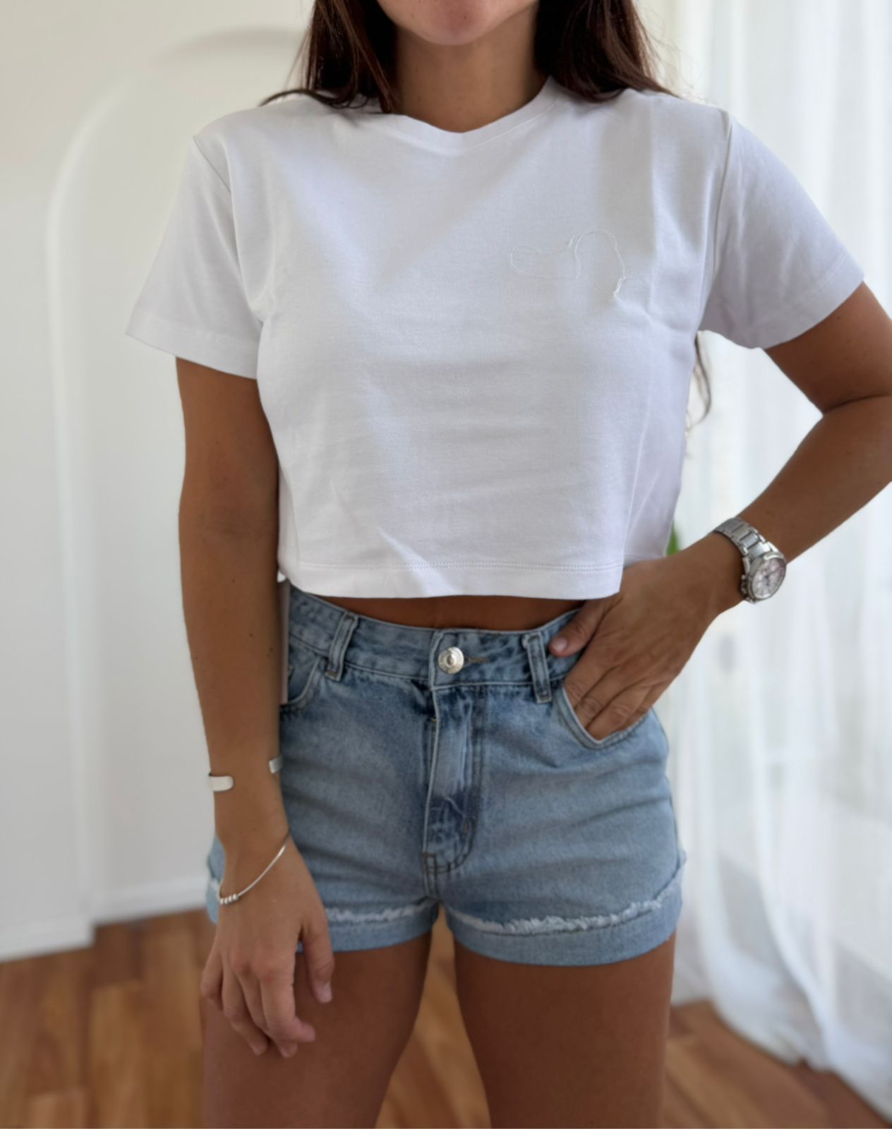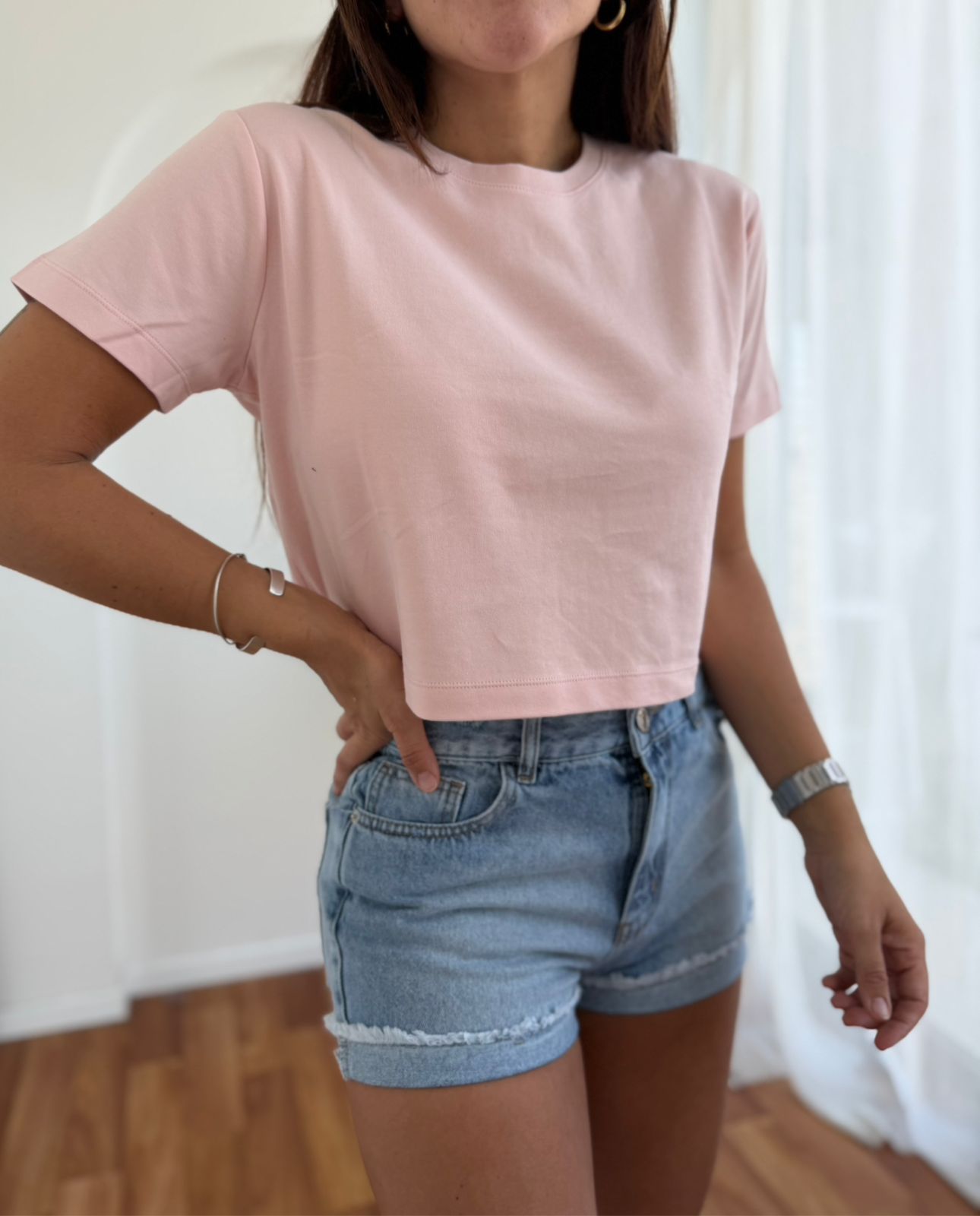 REMERA CROP DE ALGODON CUELLO REDONDO SIENNA