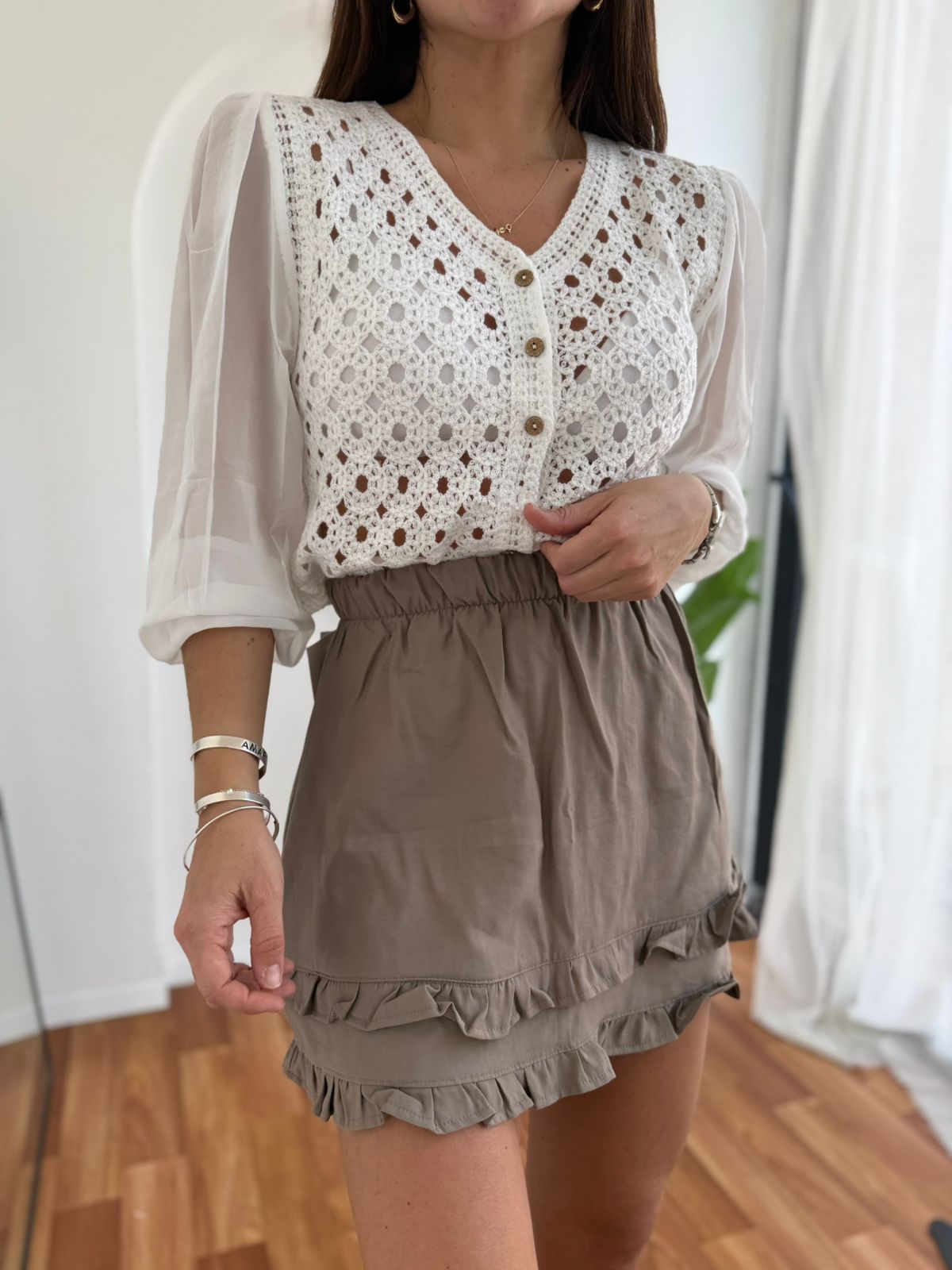 FALDA TIRO ALTO CON VOLADOS TWILL TENCEL