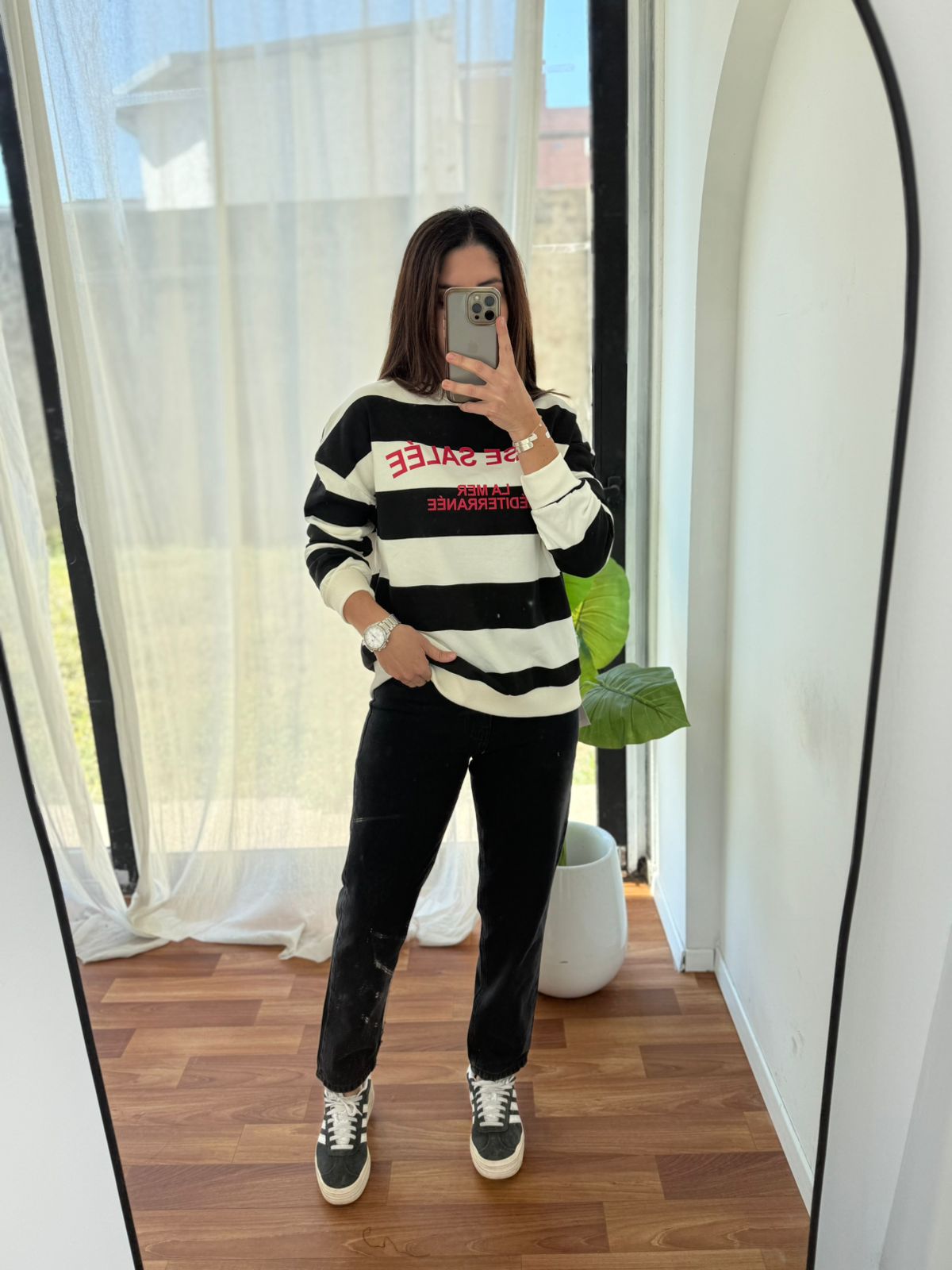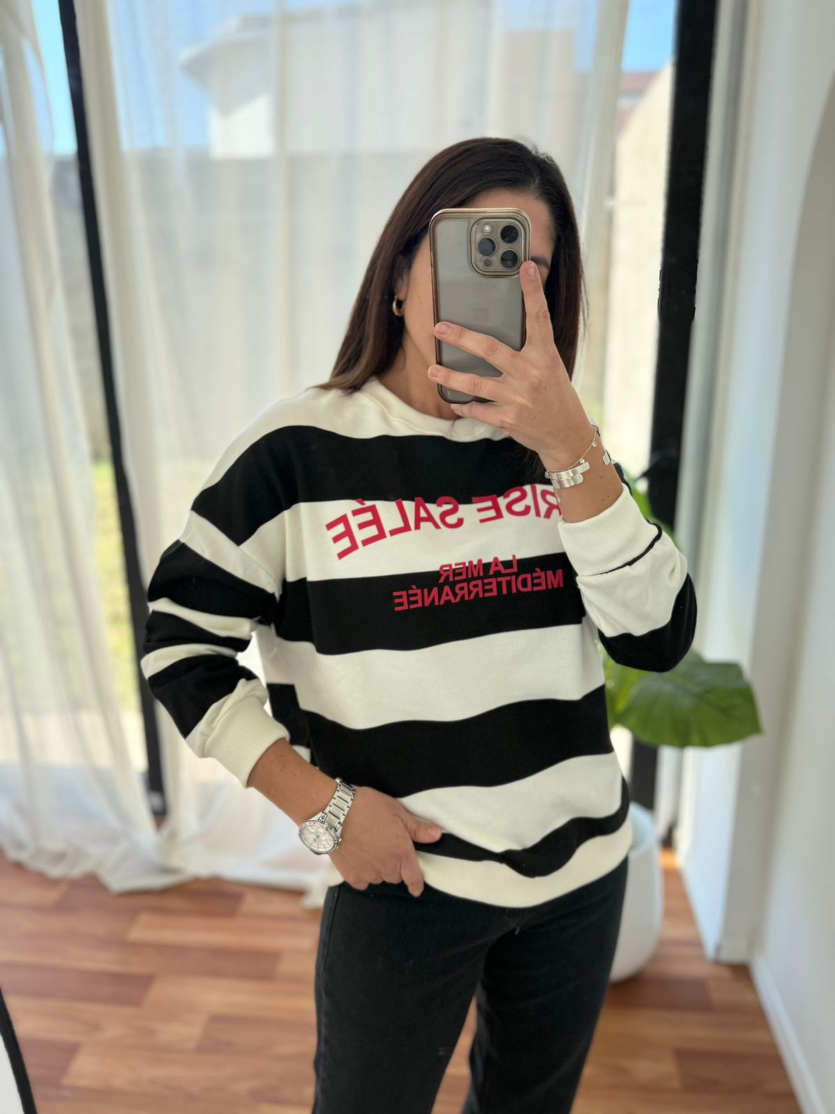 MAXIBUZO DE ALGODON RUSTICO RAYADO CON ESTAMPA CRETA