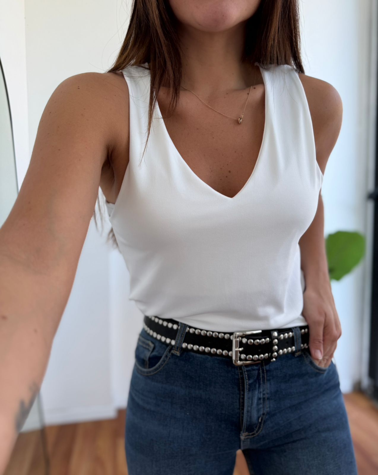 MUSCULOSA DE MICROFIBRA ESCOTE V HOLE