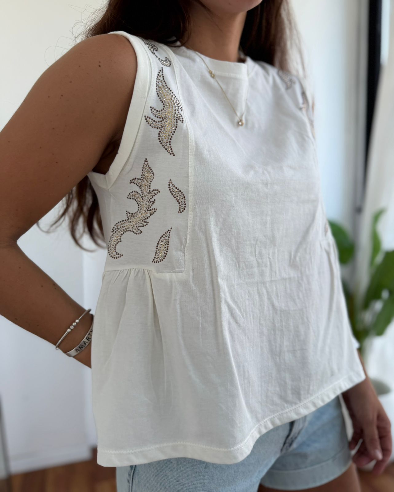 MUSCULOSA DE ALGODON CON STRASS JORGELINA