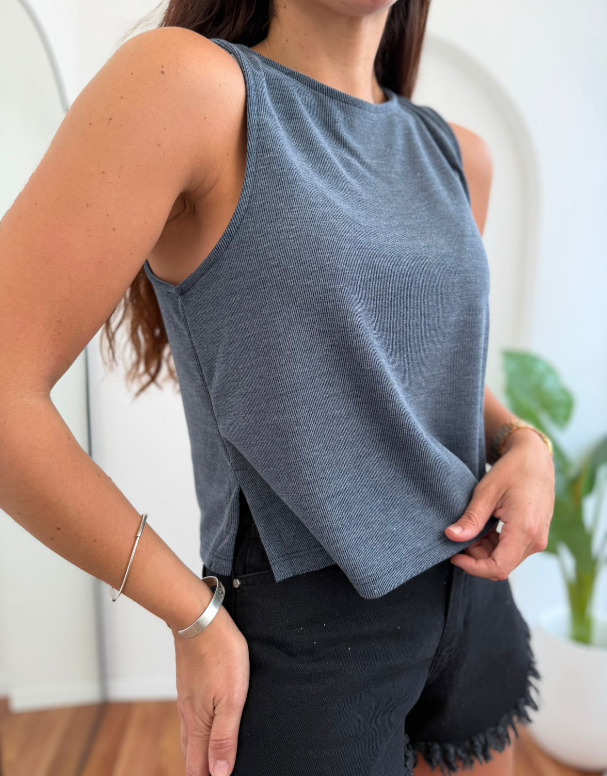 MUSCULOSA MORLEY VINTAGE CON TAJO EN ESPALDA ALTA Y ABERTURAS A LOS COSTADOS LANE