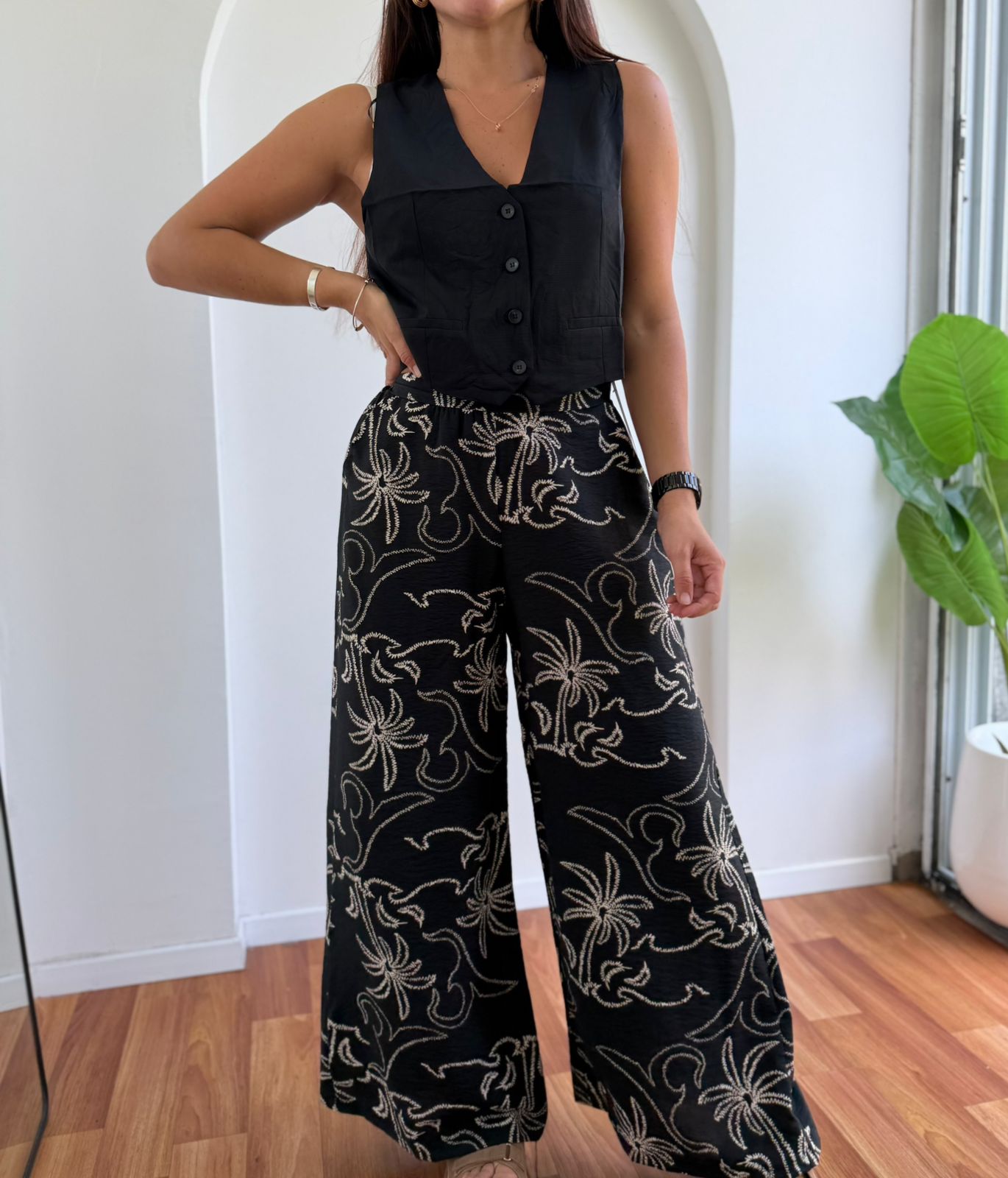 PALAZZO ESTAMPADO DE FIBRANA TEXTURADA CON ELASTICO ATRAS WINONA