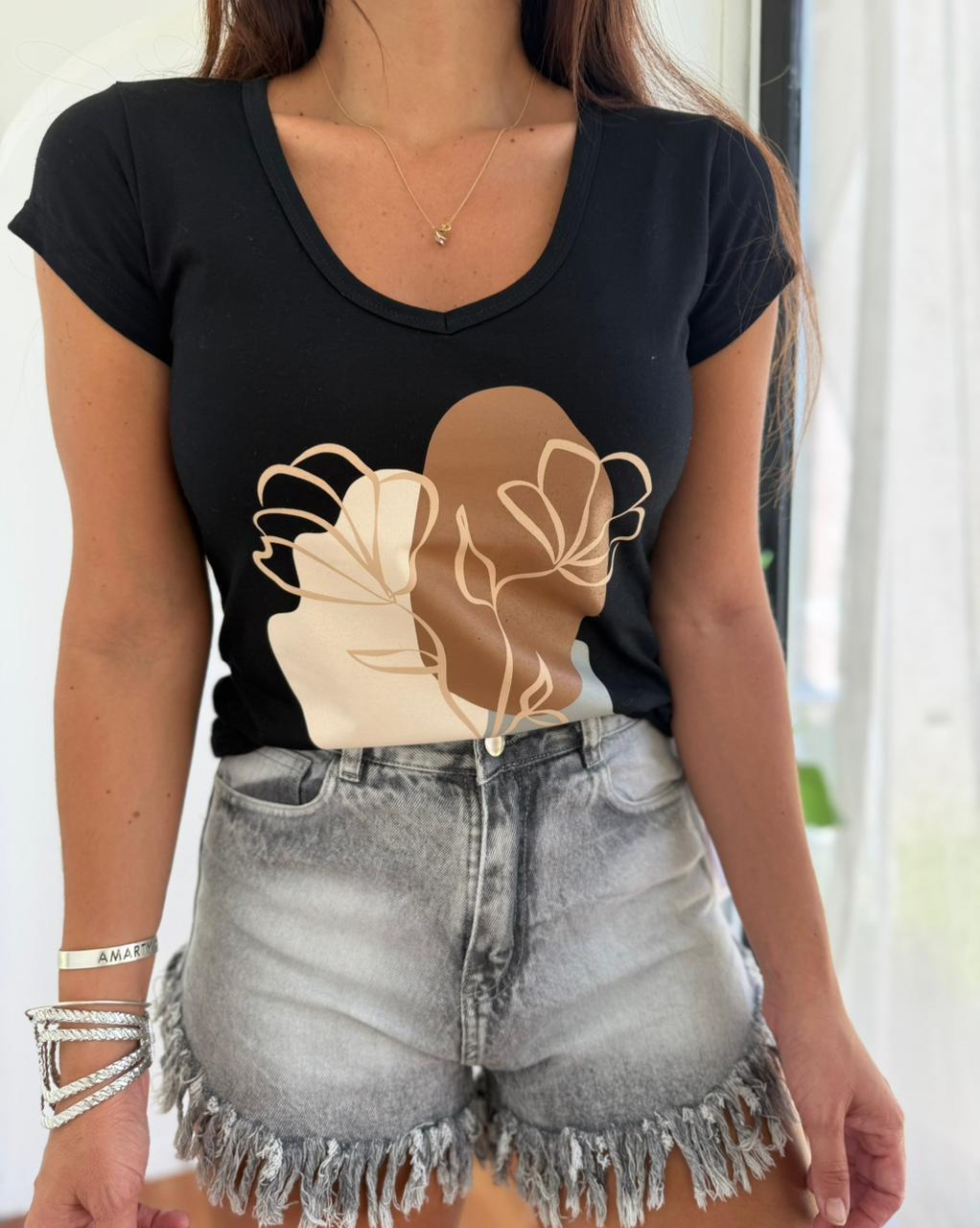 REMERA DE ALGODON ESTAMPADA CLAVEL ESCOTE V
