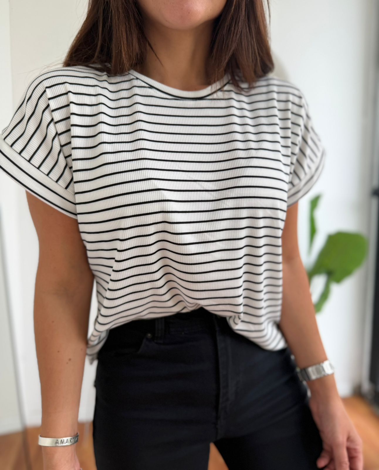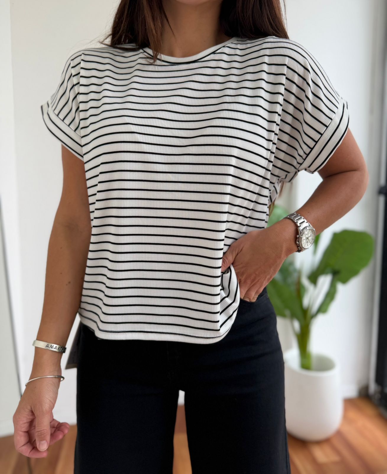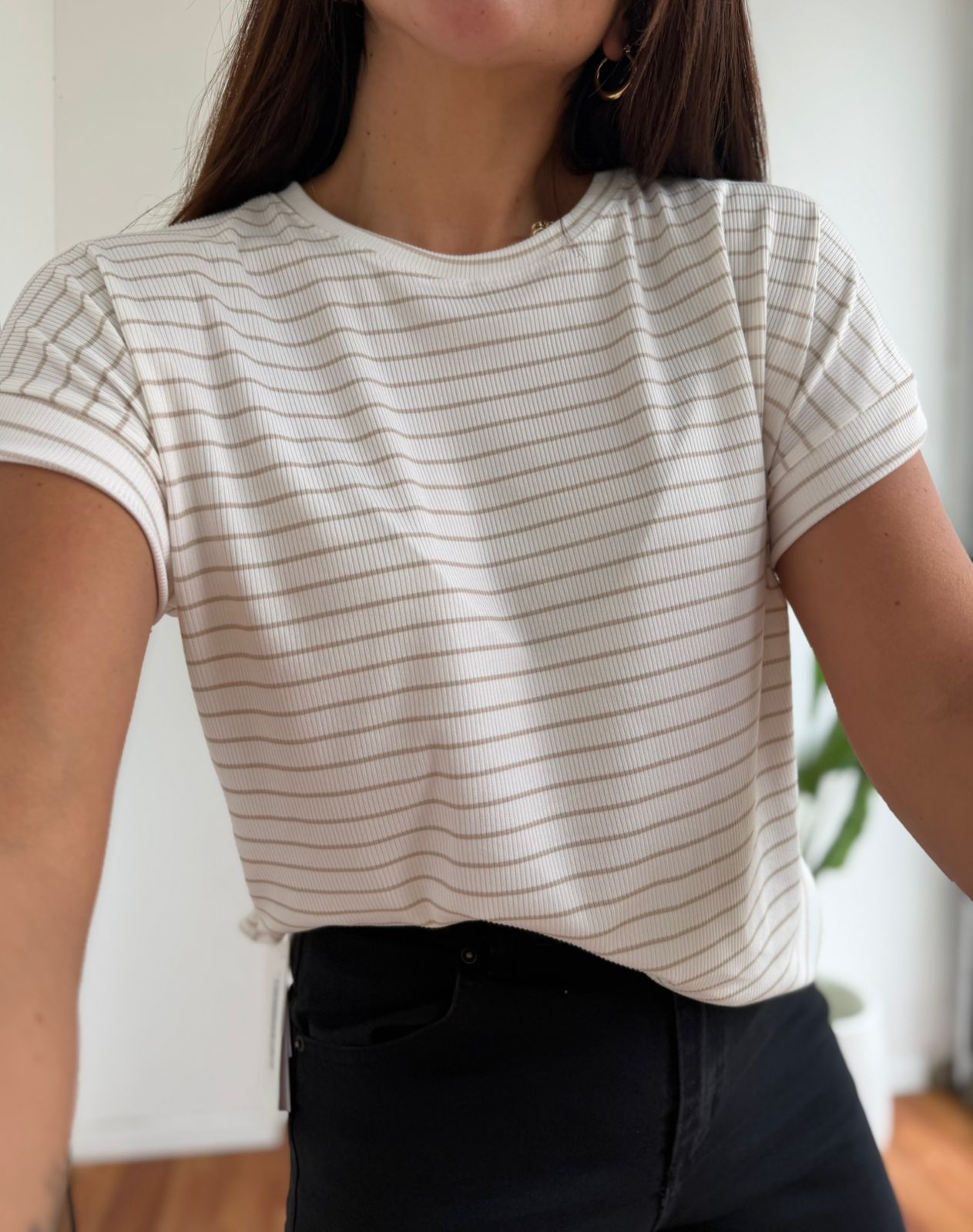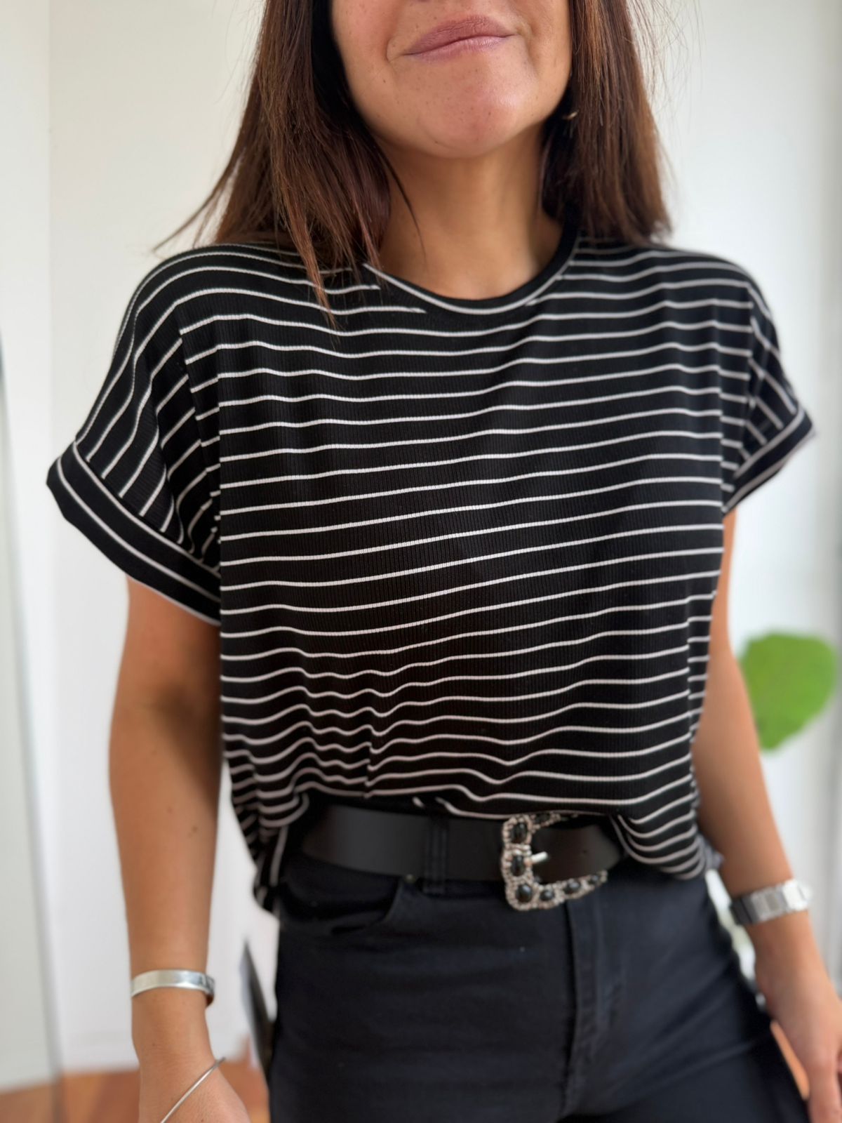 REMERA DE MORLEY RAYADA MANGA CAIDA CON PUÑO DELFI