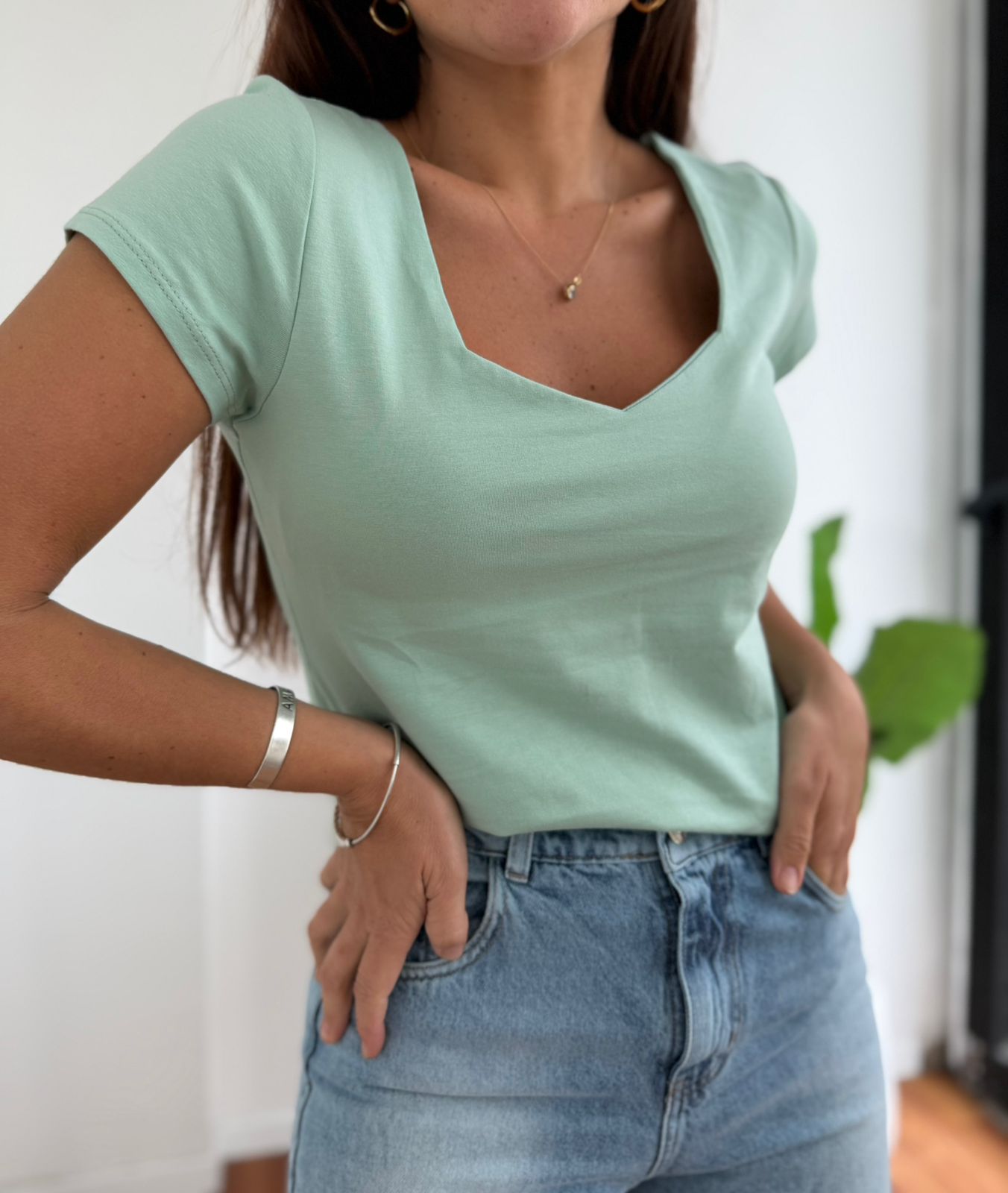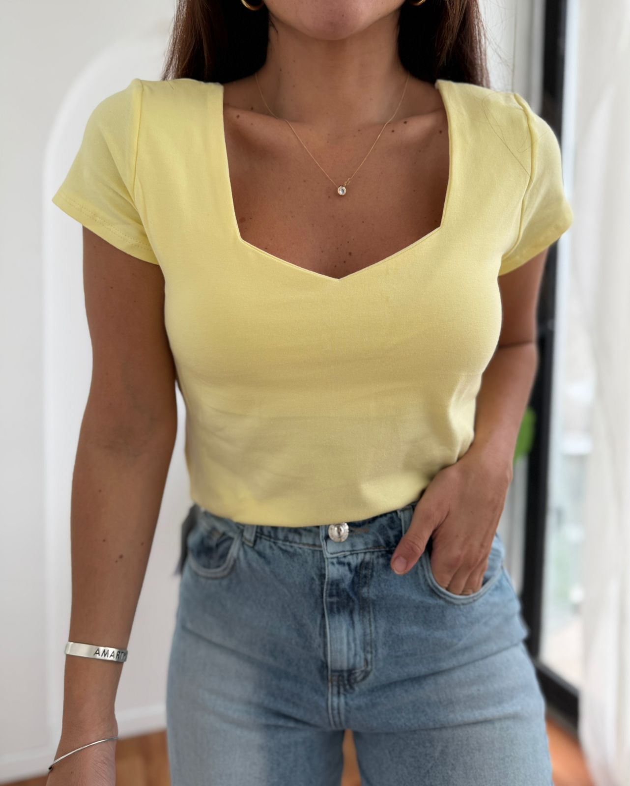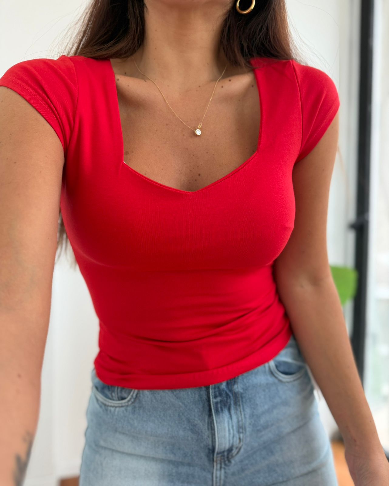 REMERA DE ALGODON CON LYCRA MANGAS CORTAS ESCOTE CORAZON