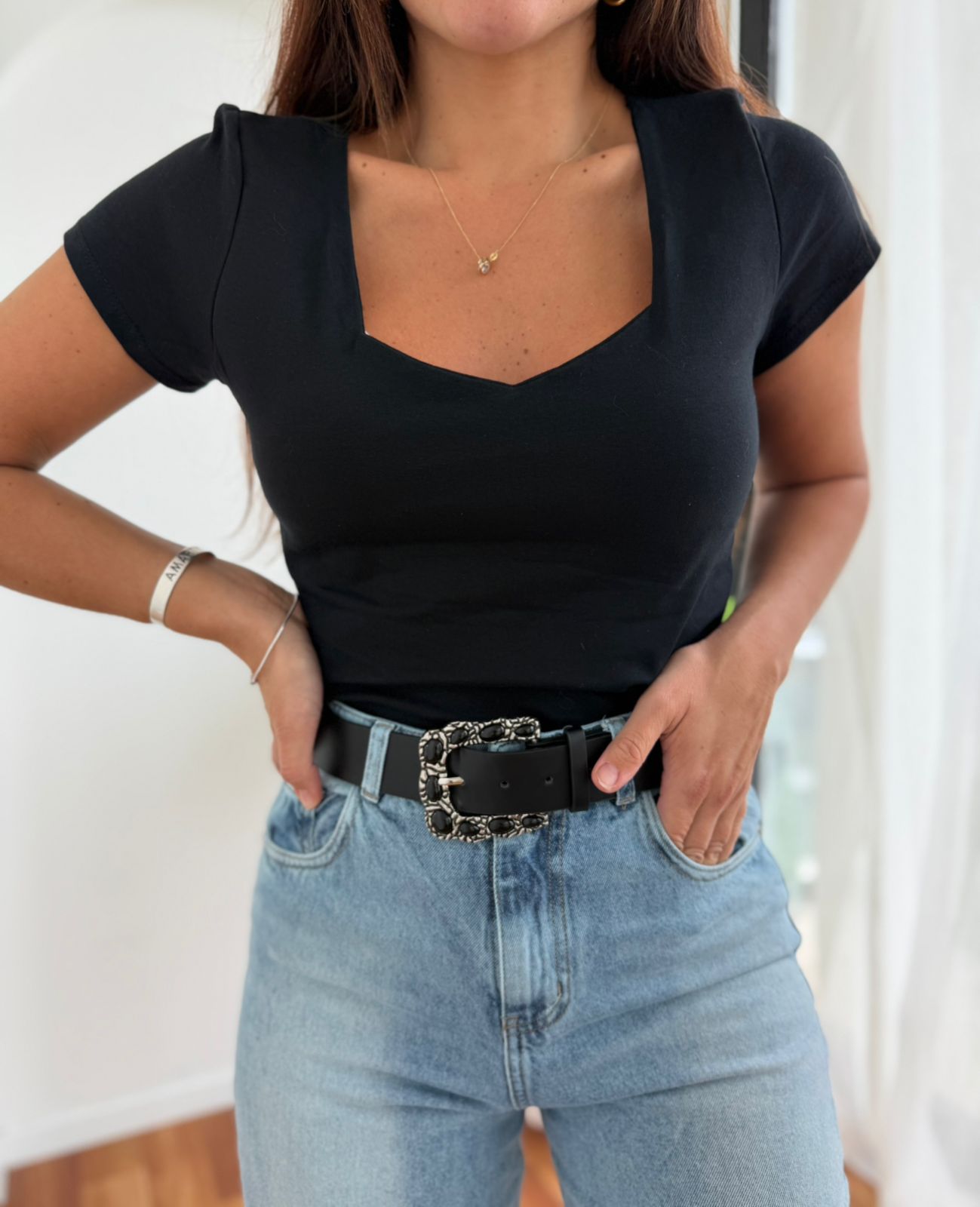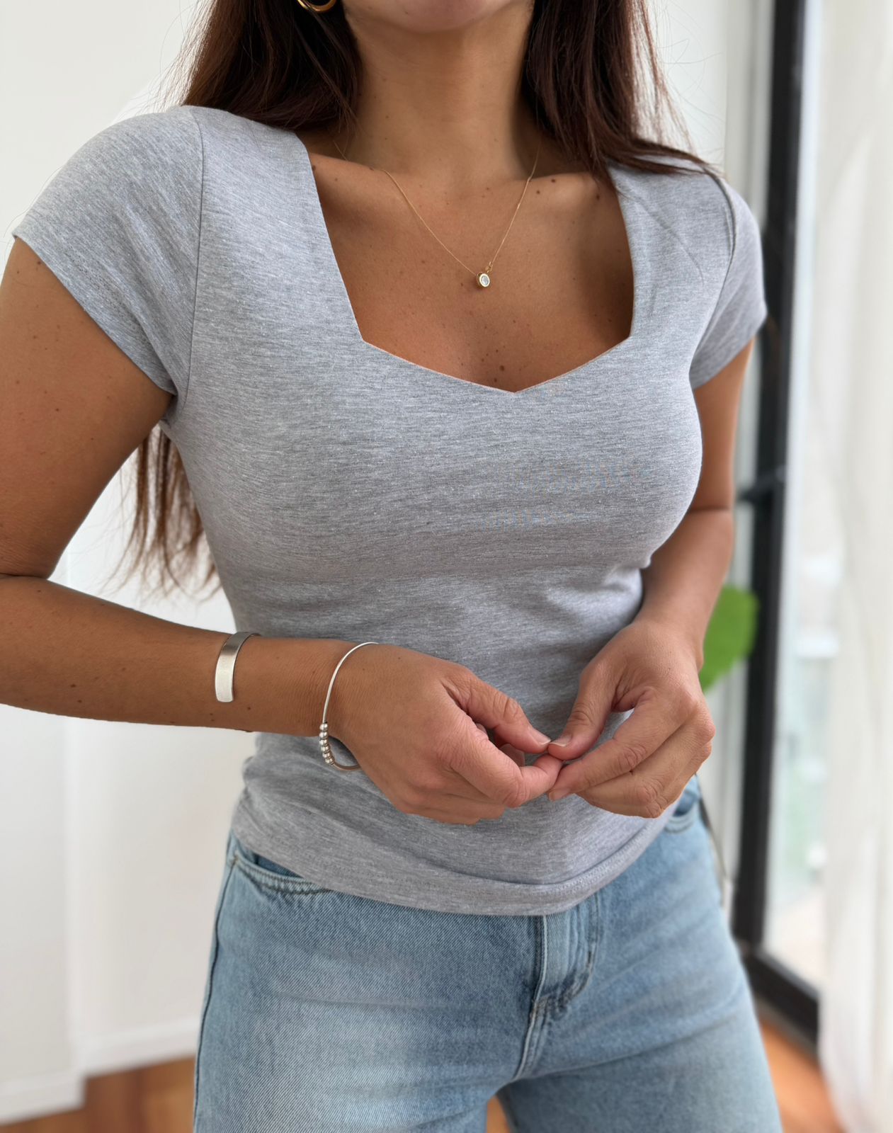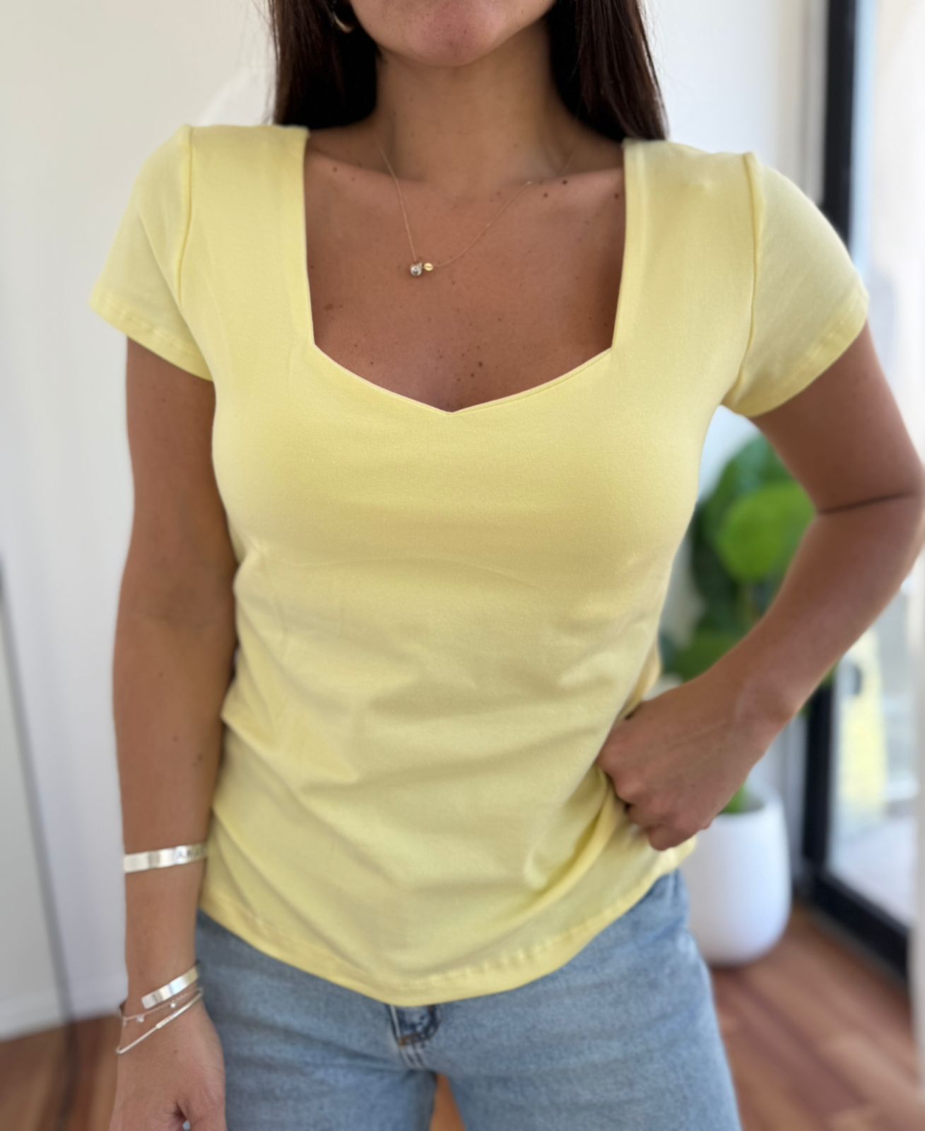 REMERA DE ALGODON CON LYCRA MANGAS CORTAS ESCOTE CORAZON