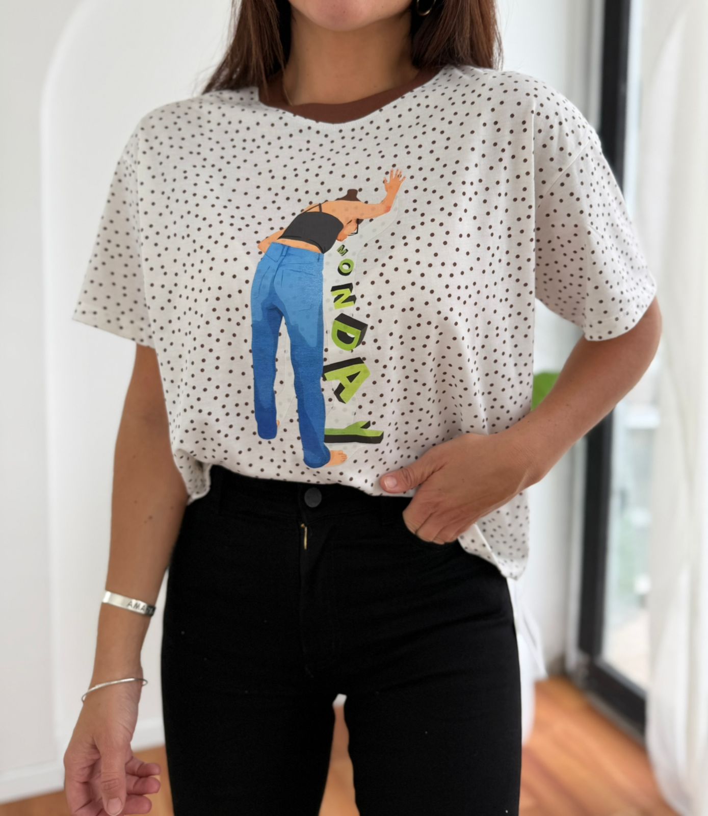 REMERA OVERSIZE DE ALGODON ESTAMPADA A LUNARES MONDAY