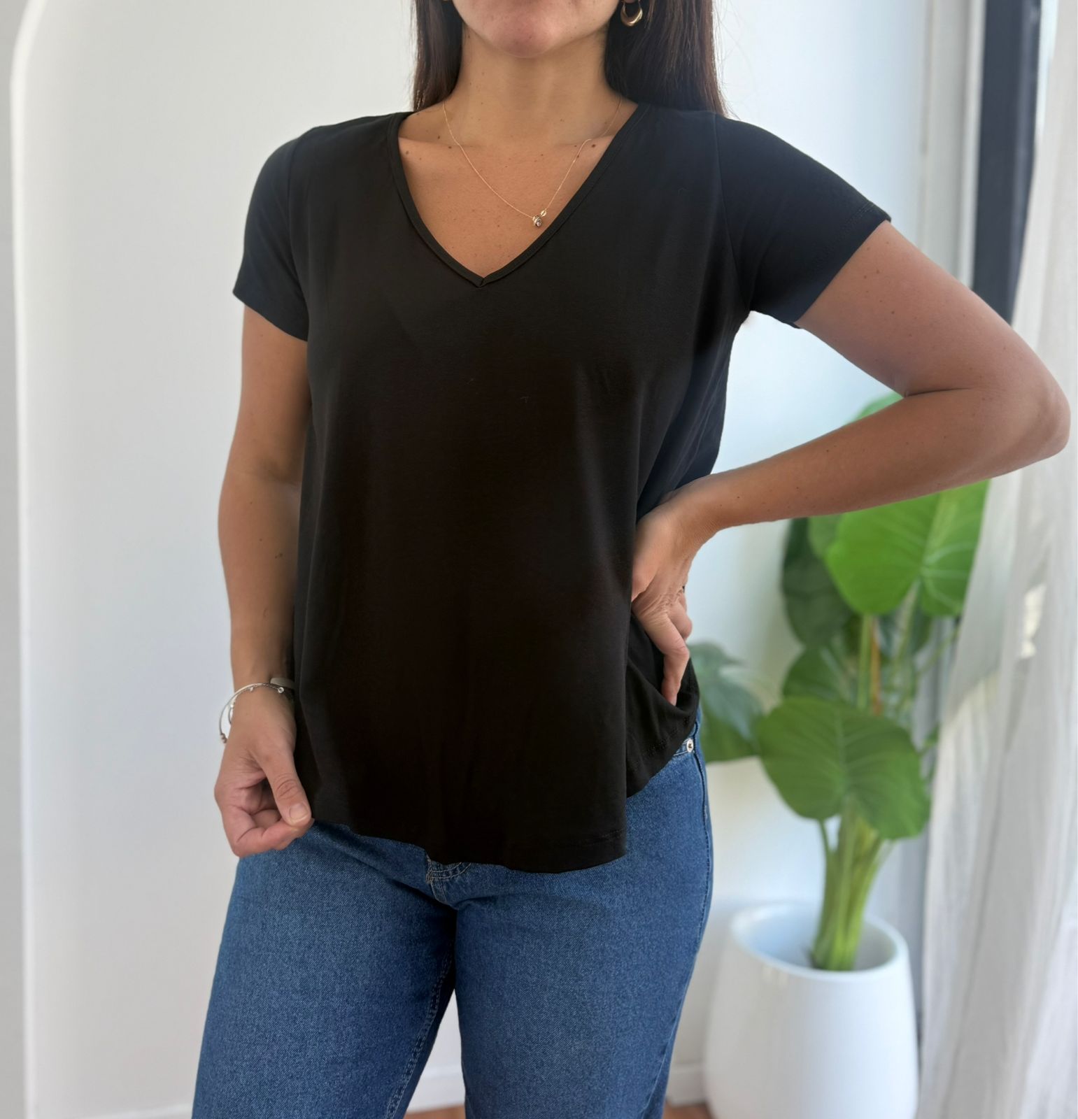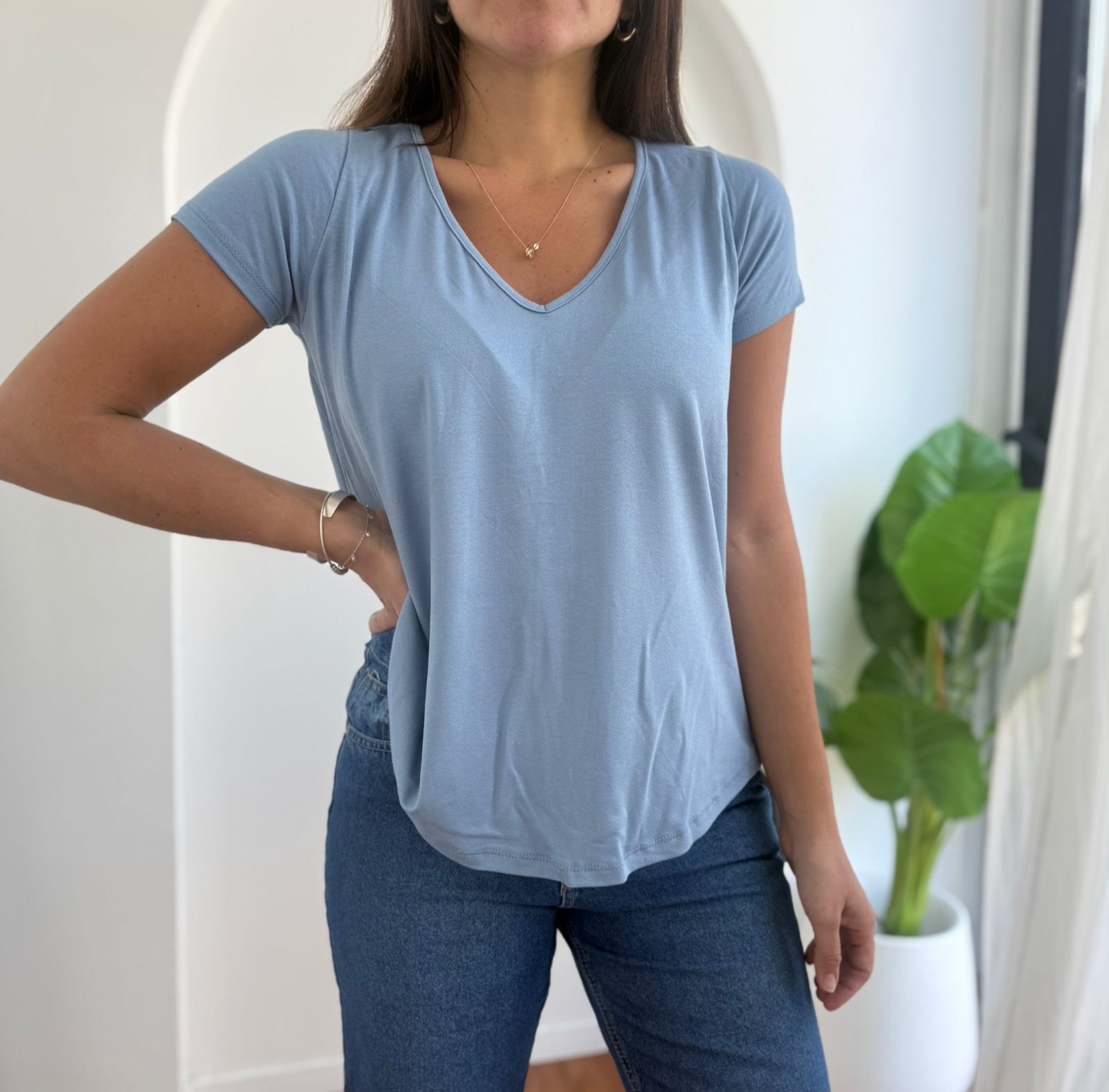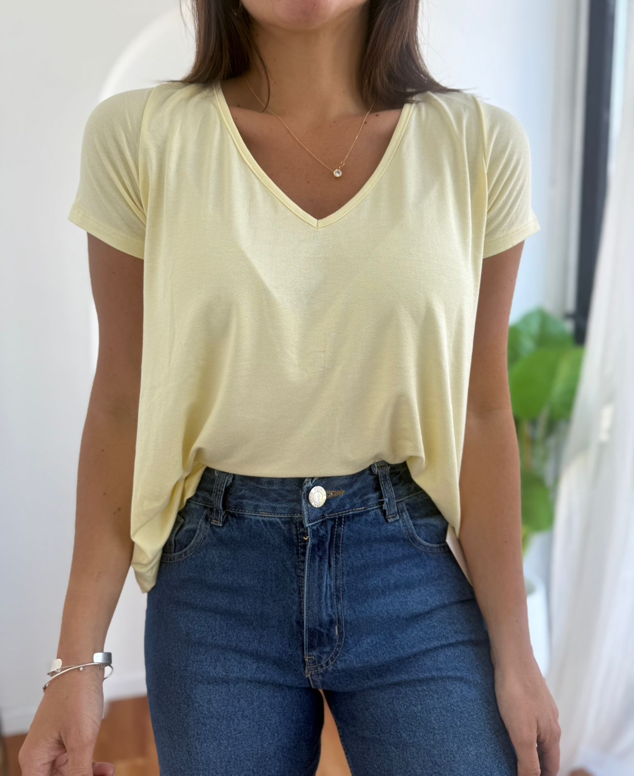REMERA MODAL VISCOSA ESCOTE V CON GOTA ATRAS ROSE
