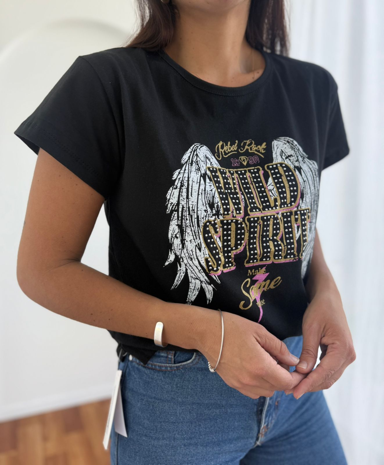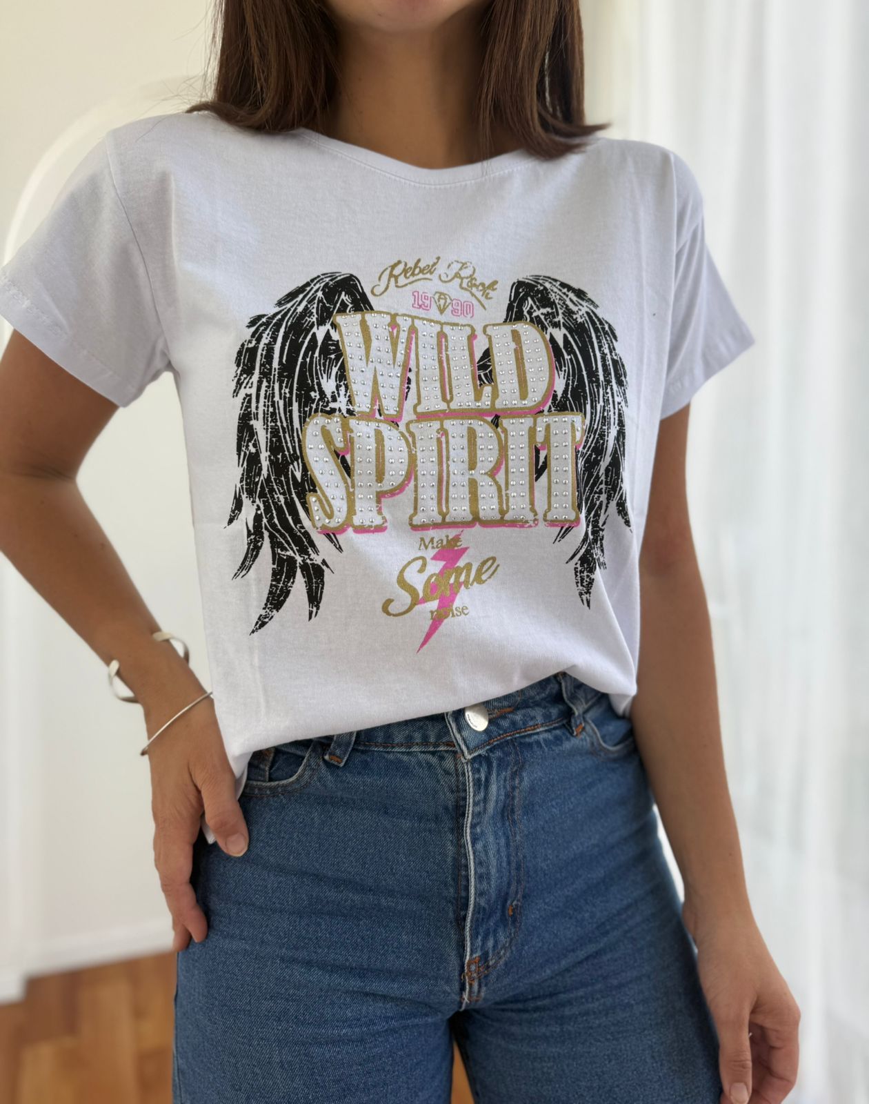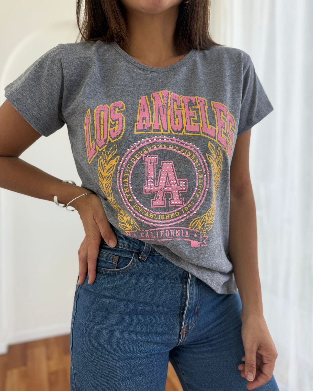 REMERA DE ALGODON CON STRASS ESTAMPADA STREET