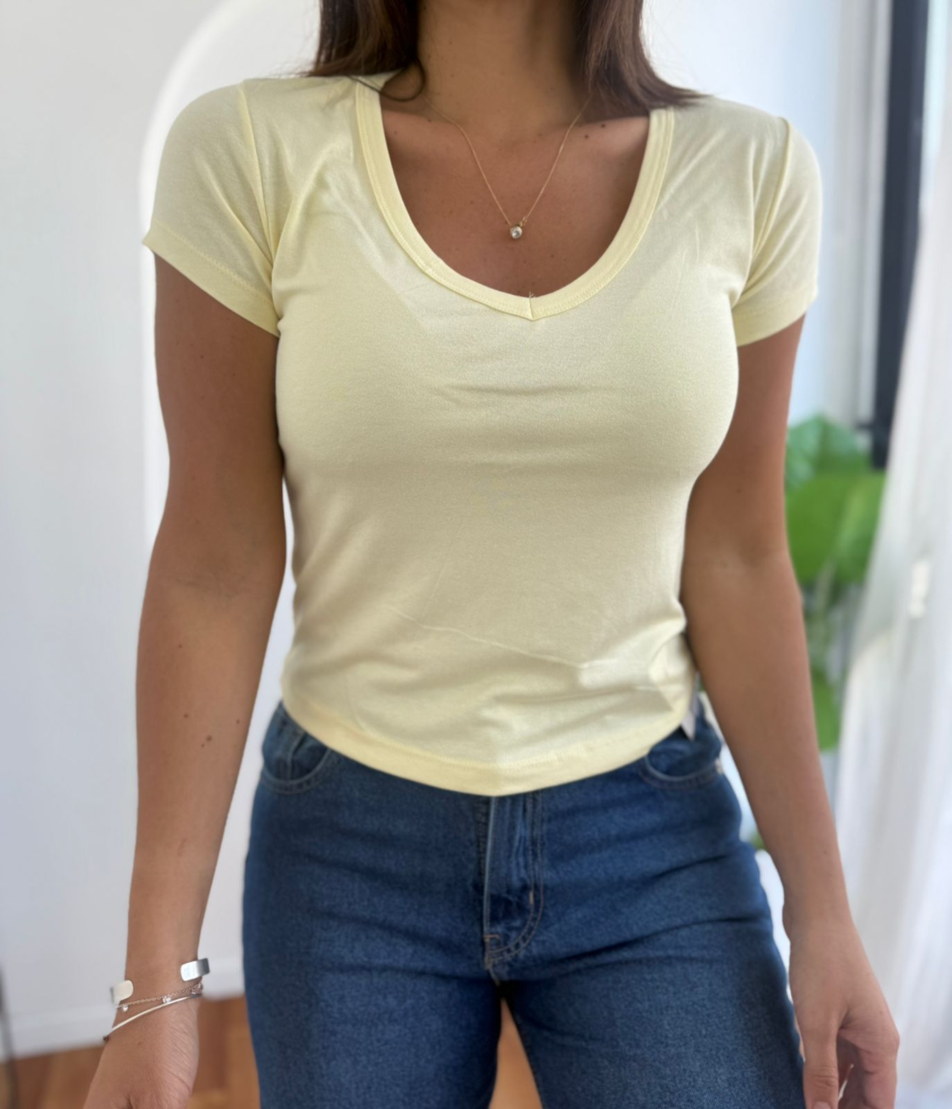 REMERA MODAL VISCOSA MANGAS CORTAS BASICA ESCOTE V VICKY