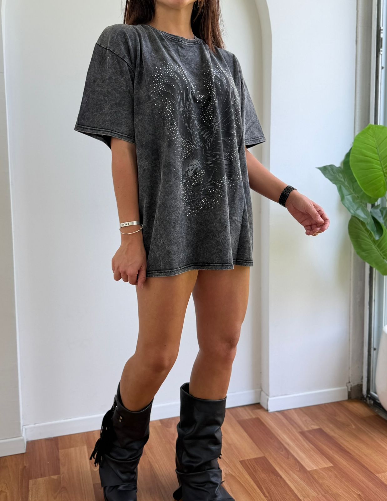 REMERON DE ALGODON BATIK CON ESTAMPA Y STRASS AGUILA