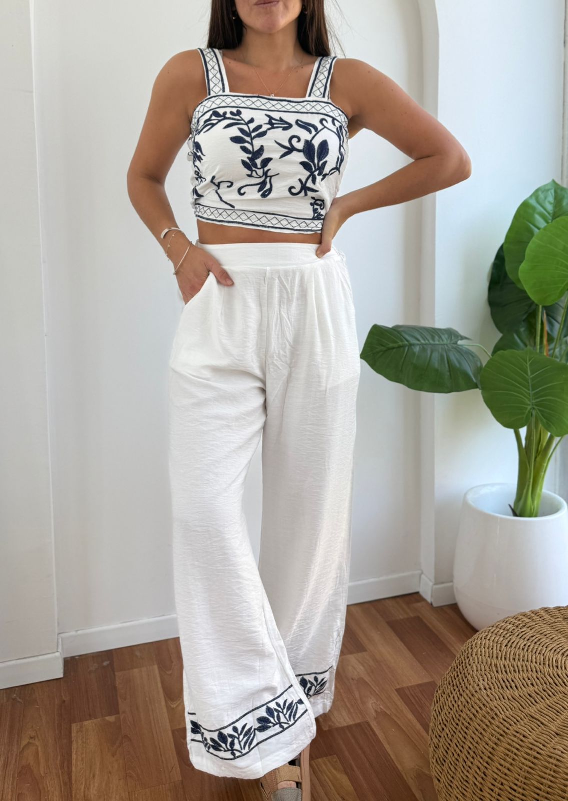 SET DE LINO CON TOP BORDADO Y PALAZO ALICIA