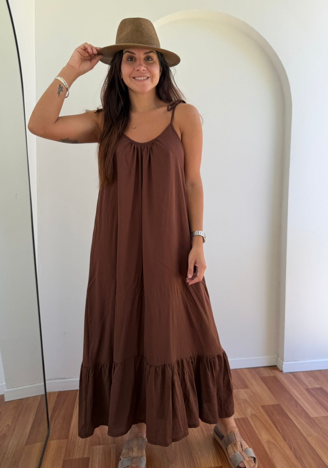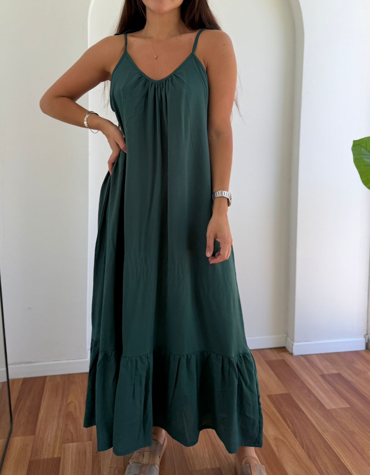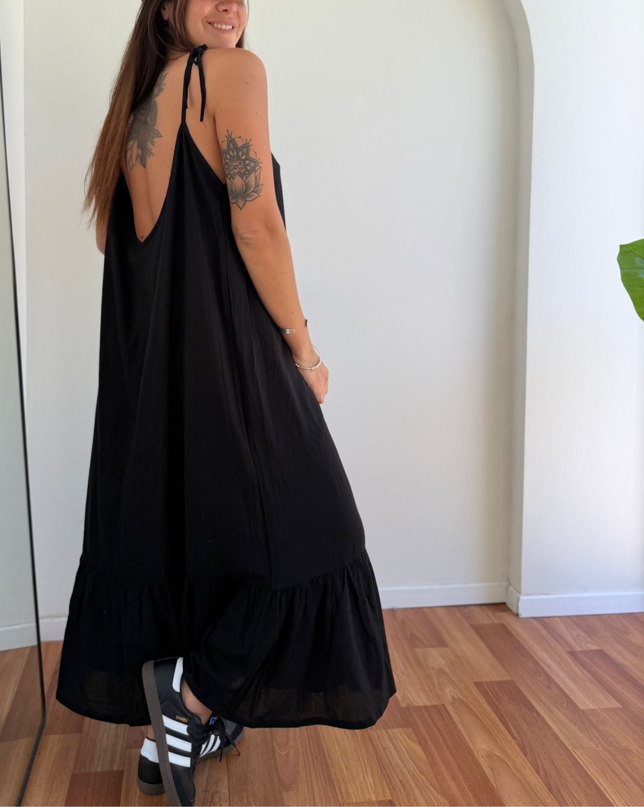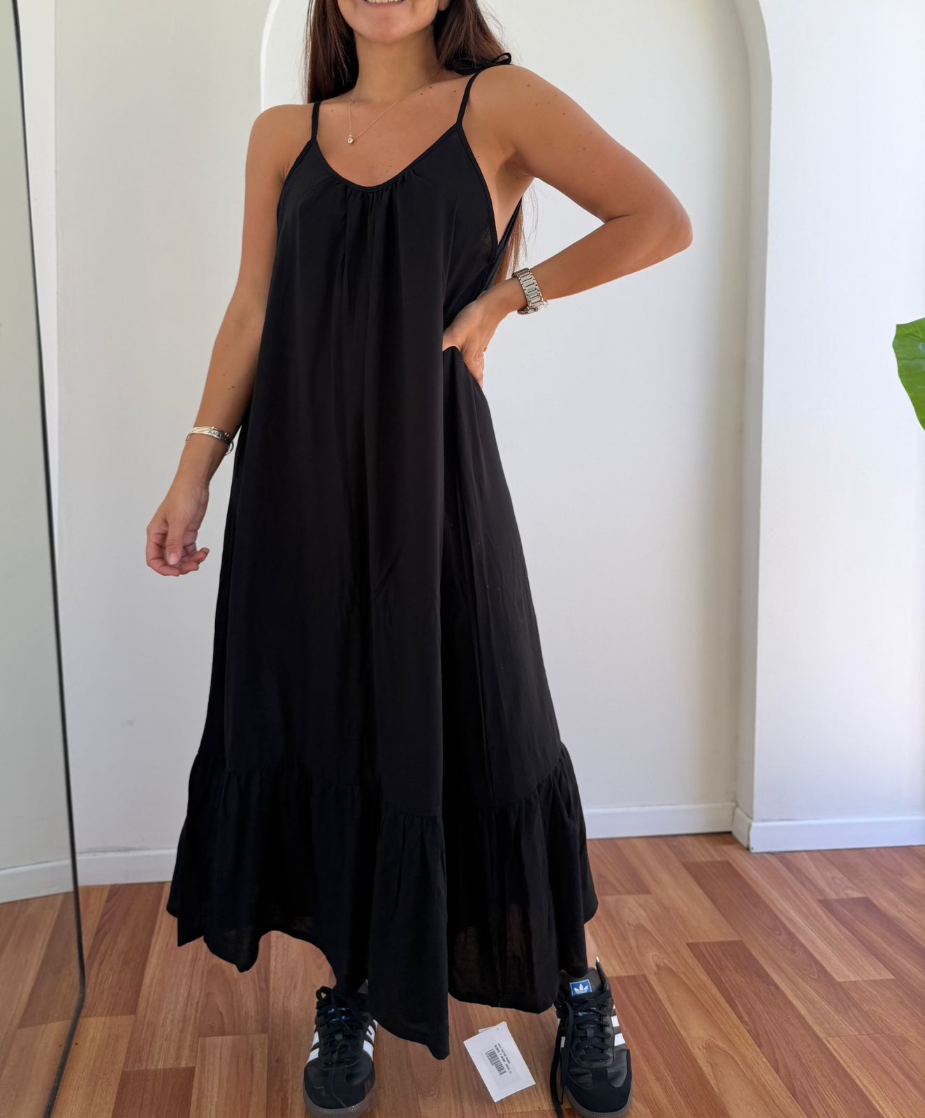 MAXI VESTIDO DE LINO CON VOLADO ANDREA