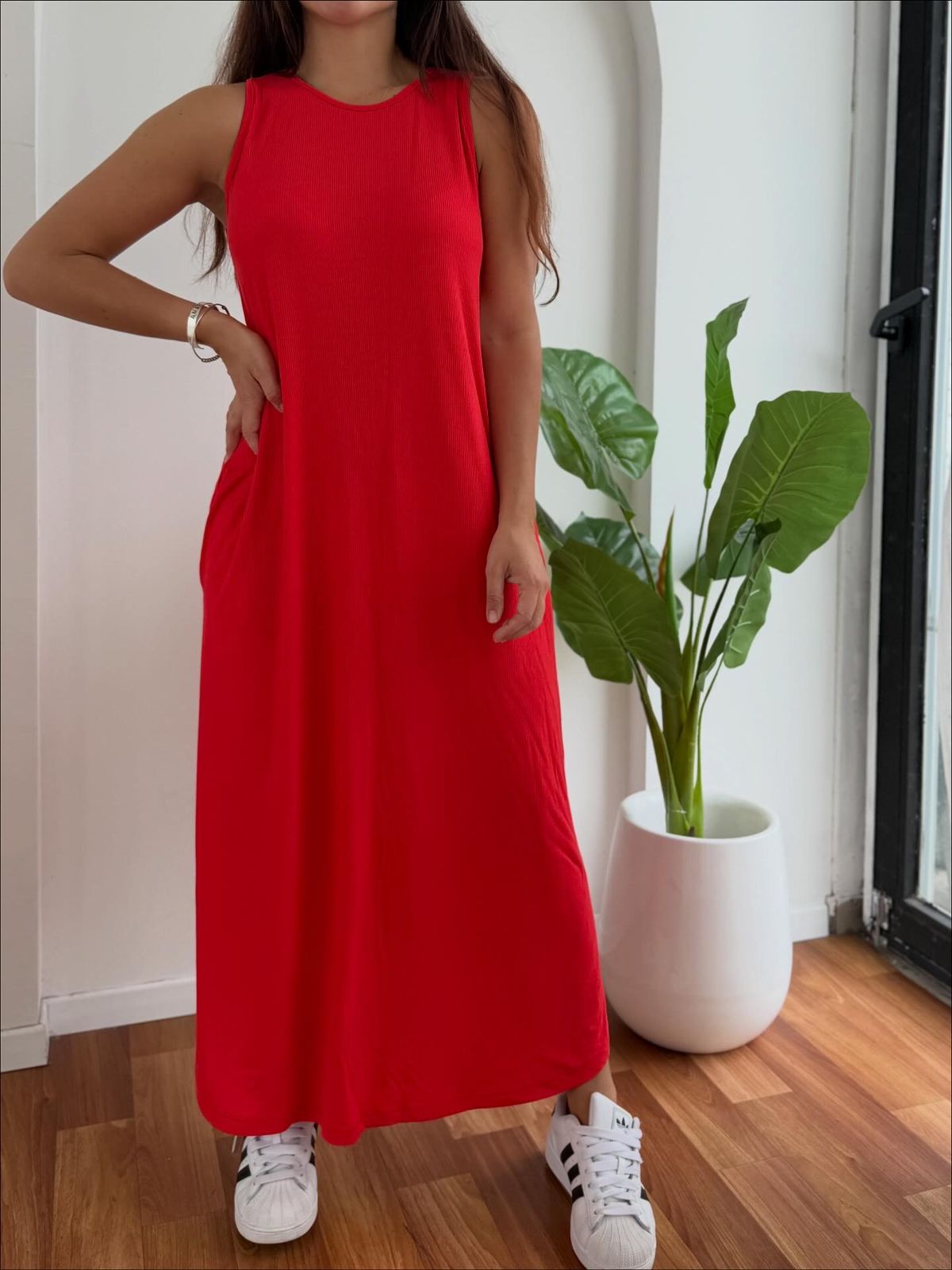 VESTIDO LARGO SIN MANGAS DE MORLEY CON BOLSILLOS VIVIANA